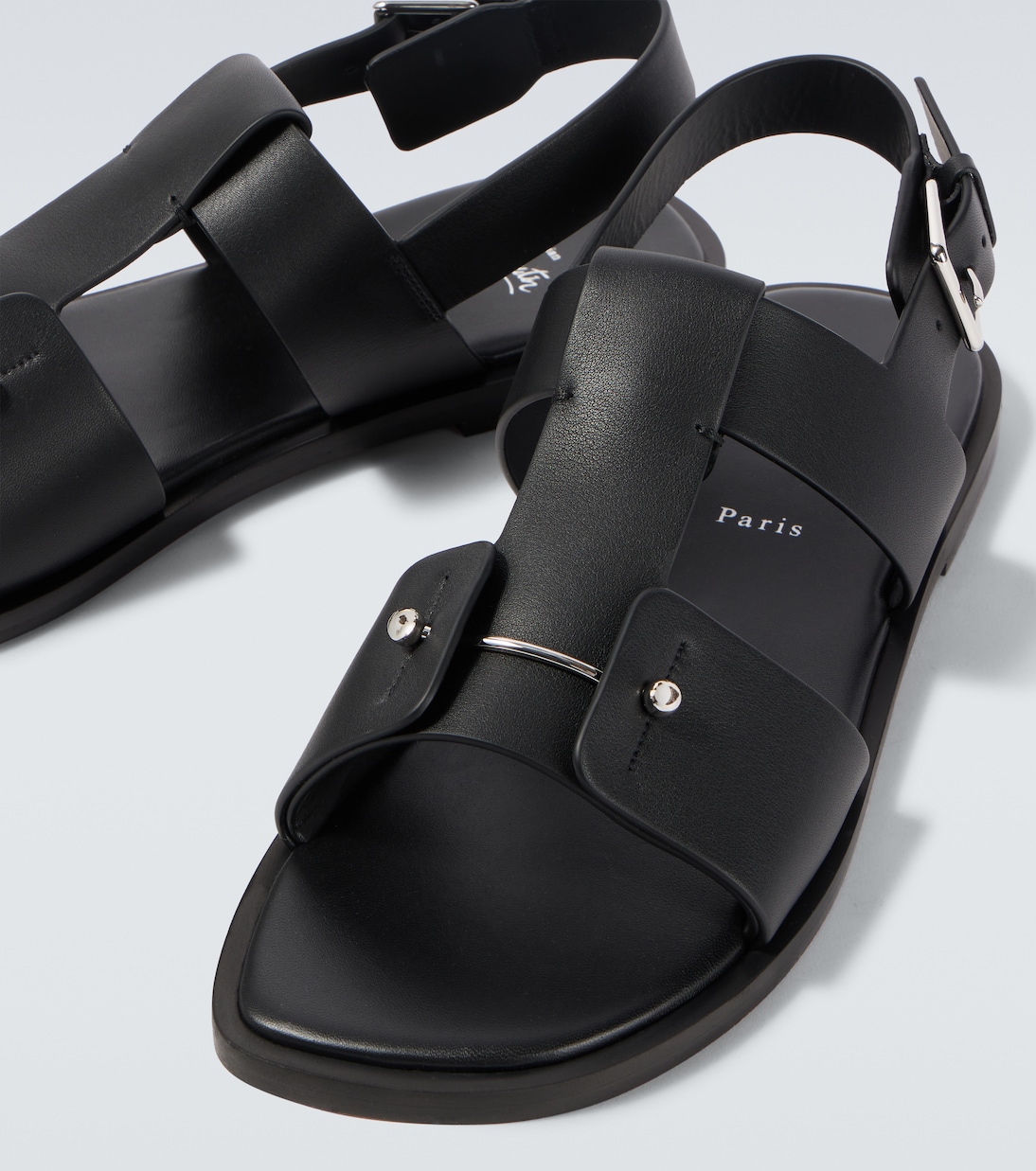 Босоножки Chambellis от Christian Louboutin, изготовленные в Италии из кожи, украшены серебристыми металлическими пирсингами спереди и металлическими застёжками на ремешках на щиколотке. Этот дизайн дополняет фирменная красная кожаная подошва бренда.