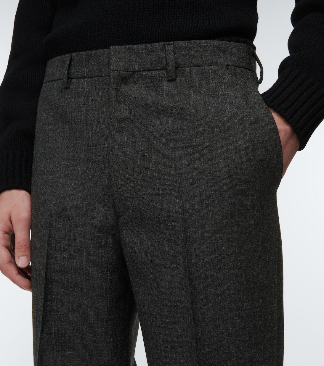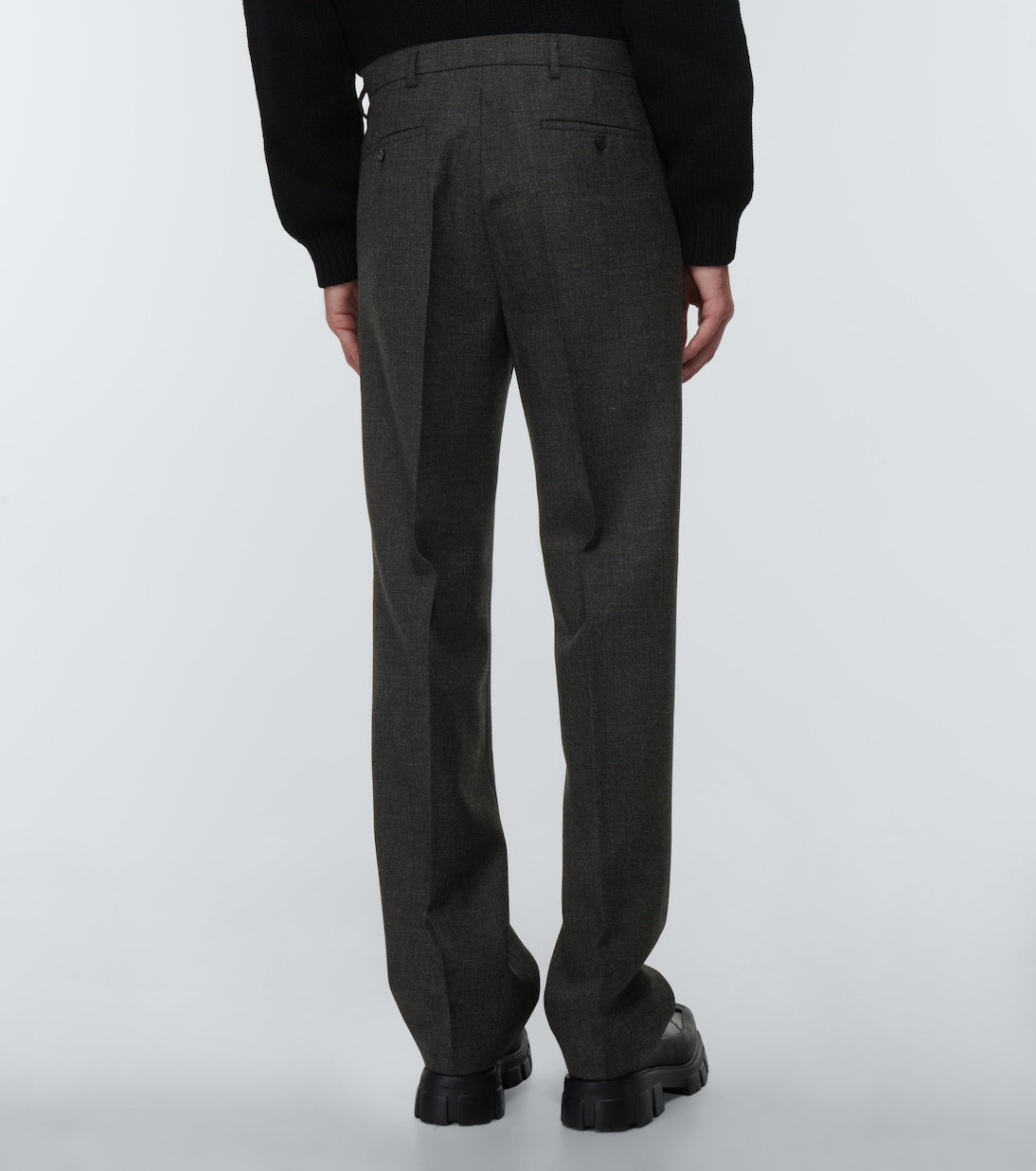 Эти брюки Prada, изготовленные в Италии из натуральной шерсти, имеют прямой крой и потайную застежку на крючок и пуговицу, косые карманы спереди и прорезные карманы сзади.