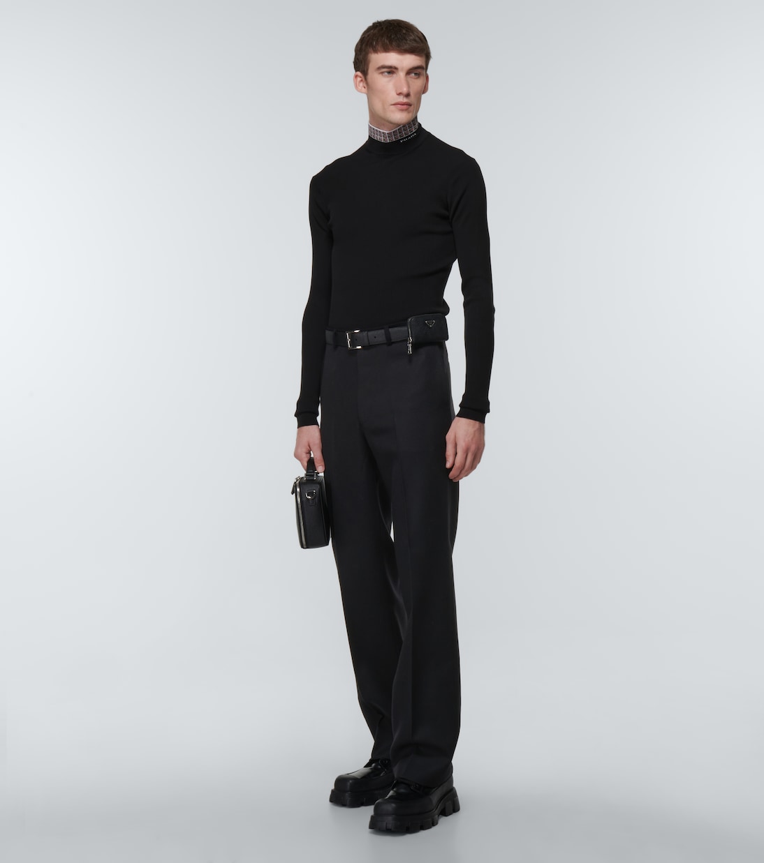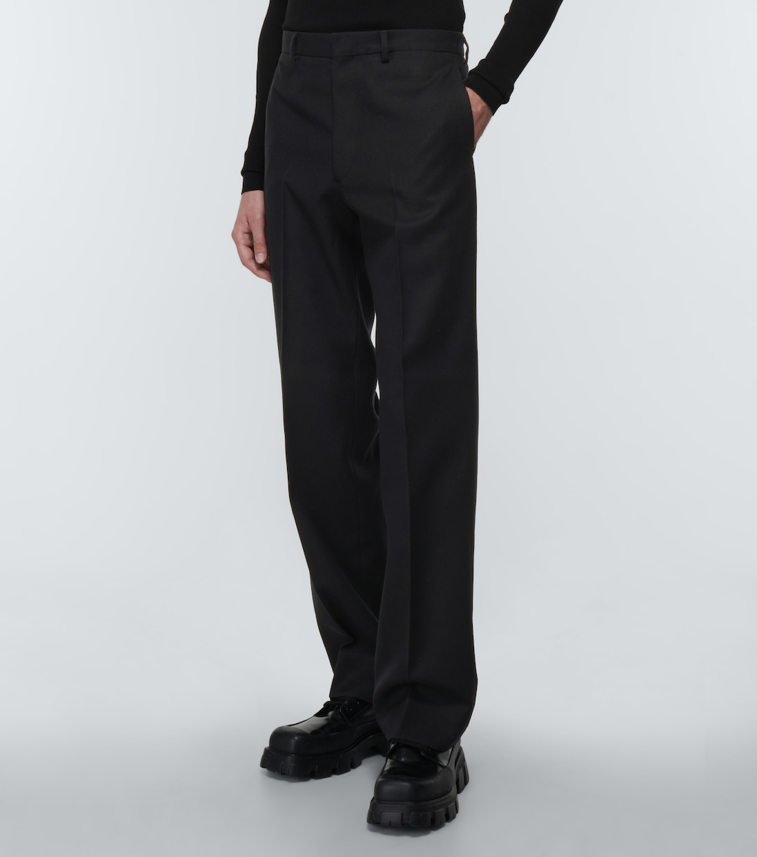Эти брюки Prada, изготовленные в Италии из шерсти, имеют прямой крой и потайную застежку на крючок и пуговицу, косые карманы спереди и прорезные карманы сзади.