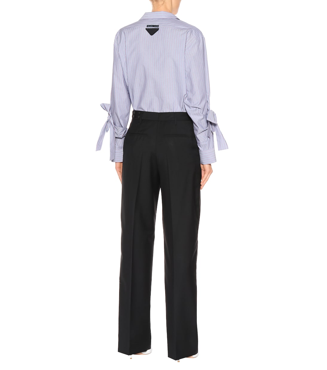 Эти брюки Prada, универсальные по цвету и силуэту, станут идеальным фоном для демонстрации неповторимой игривости бренда. Изготовленные в Италии из мохера и шерсти, брюки с высокой талией имеют зауженный прямой крой, создавая мужественный образ. Сочетайте их с рубашкой оверсайз, чтобы оживить свой рабочий график с 9 до 5.