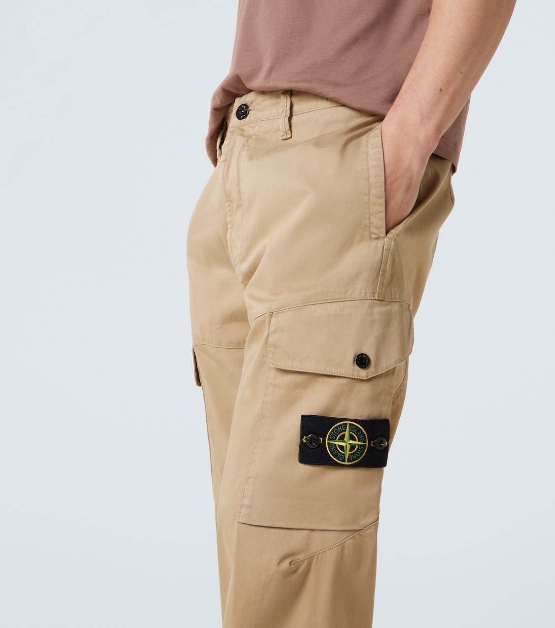 Эти брюки-карго Stone Island из эластичного хлопкового атласа имеют классический крой и карманы с клапанами на каждой штанине. Дизайн дополнен фирменным логотипом бренда Badge, который придает им фирменный штрих.