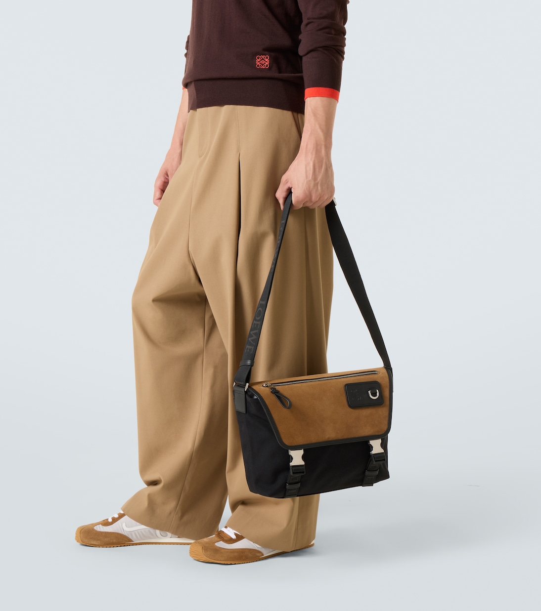 Основанная в 1846 году как кожевенная компания, компания Loewe неизменно привержена искусству и ремеслу высочайшего качества. Сумка-мессенджер Flex дополнена регулируемым тканевым плечевым ремнем, кожаной отделкой и тисненой анаграммой спереди.
