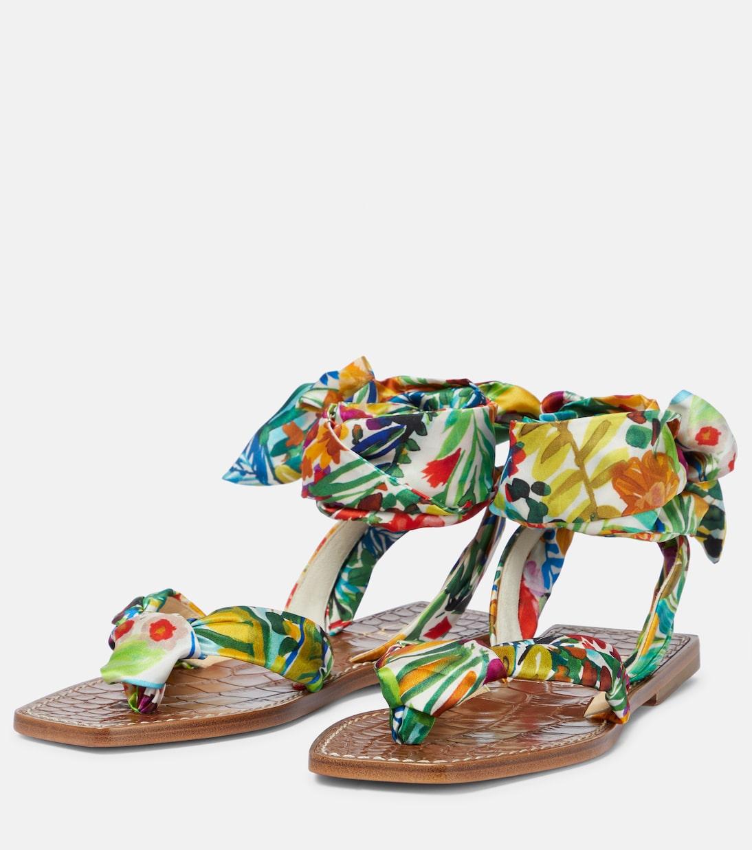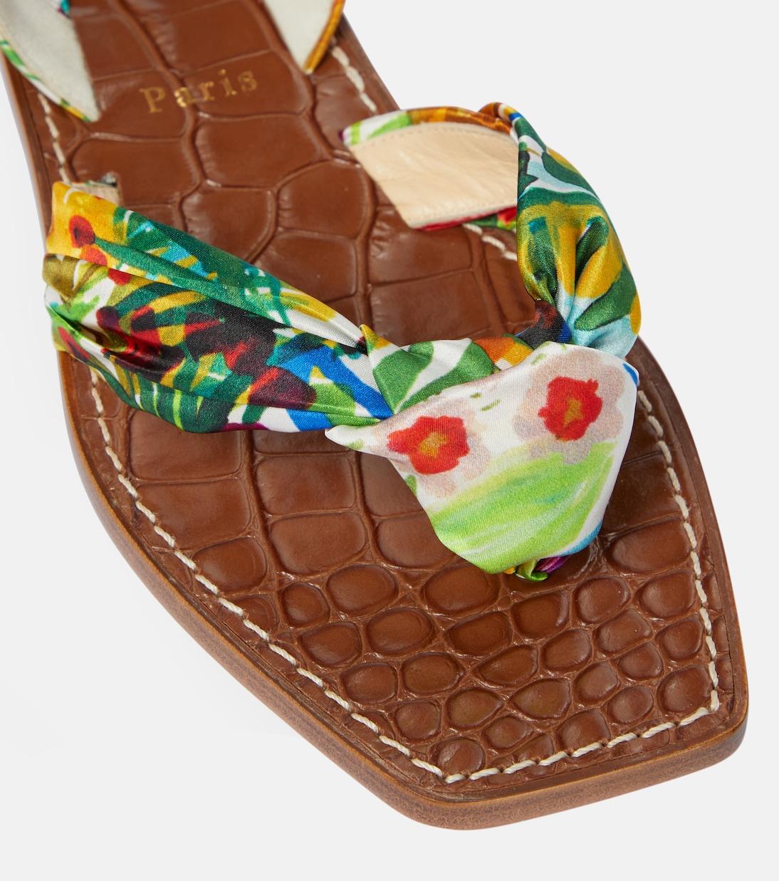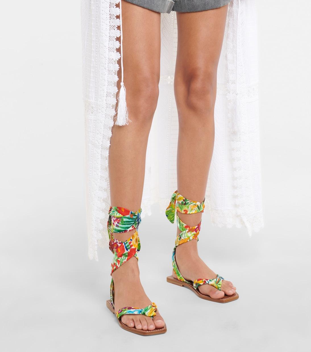 Босоножки Niloofar от Christian Louboutin на плоской подошве излучают элегантную летнюю непринужденность. Коричневая кожаная подошва с тиснением под крокодила дополнена цветными ремешками из шелкового атласа, завязывающимися вокруг щиколотки.