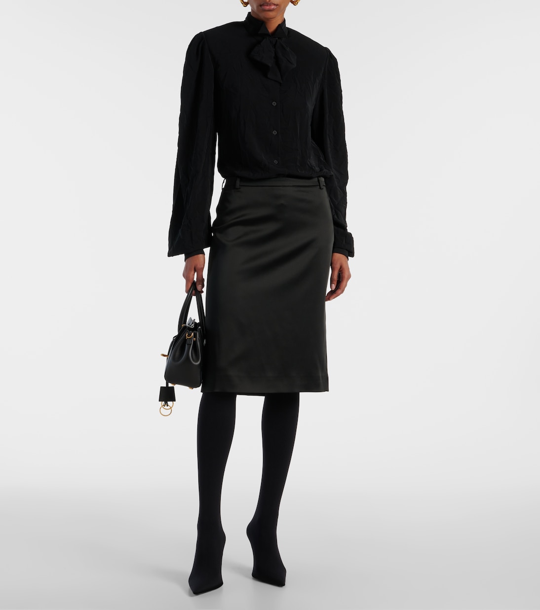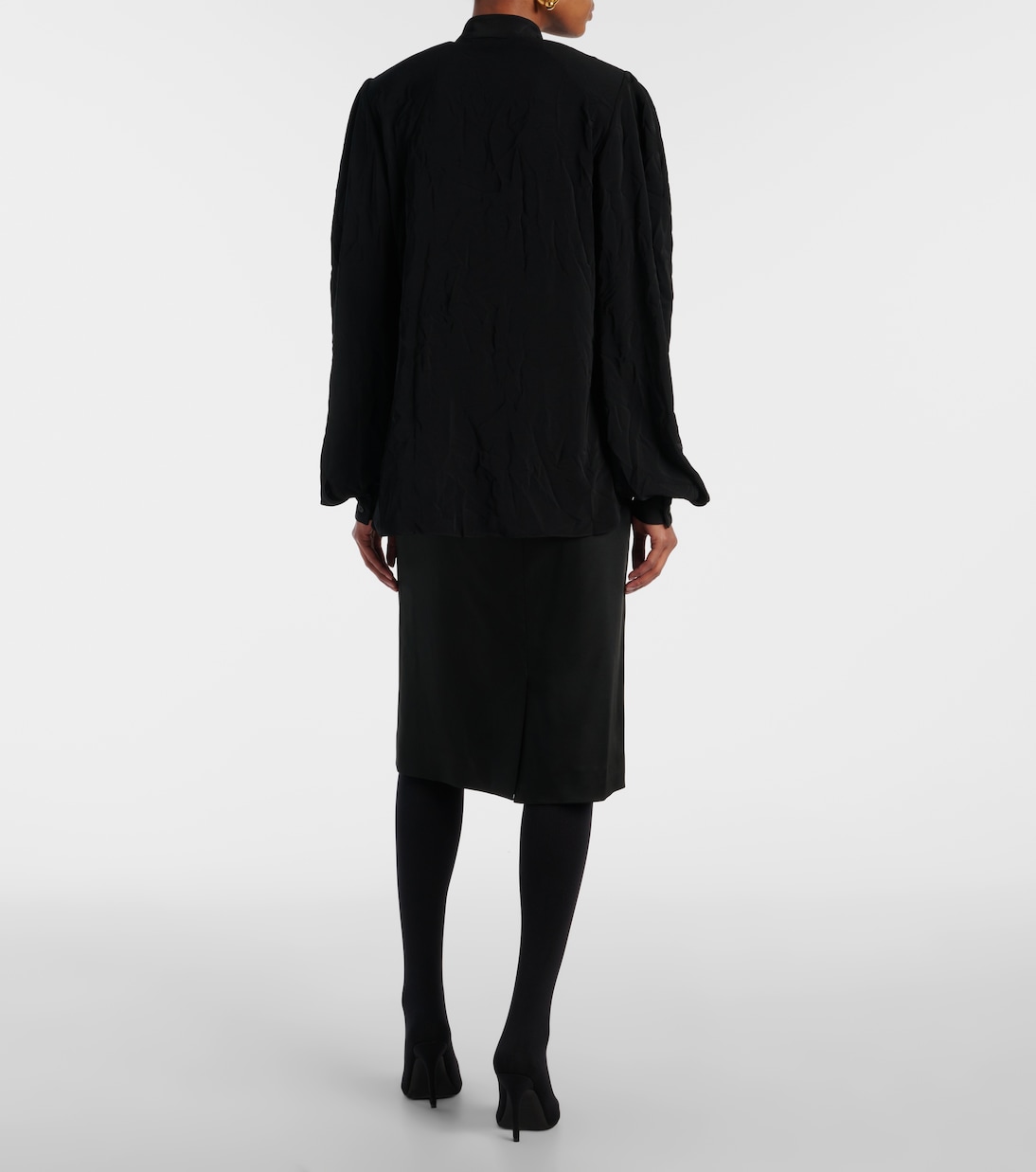 Блузка с галстуком из крепа Balenciaga, черный