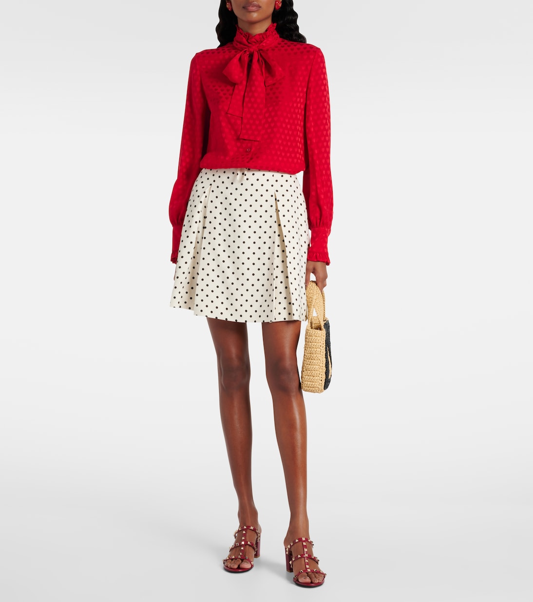 Босоножки Rockstud от Valentino Garavani украшены заклёпками по всему ремешку. Эта модель изготовлена в Италии из кожи и имеет кожаные стельки и подошвы на круглом открытом носке.