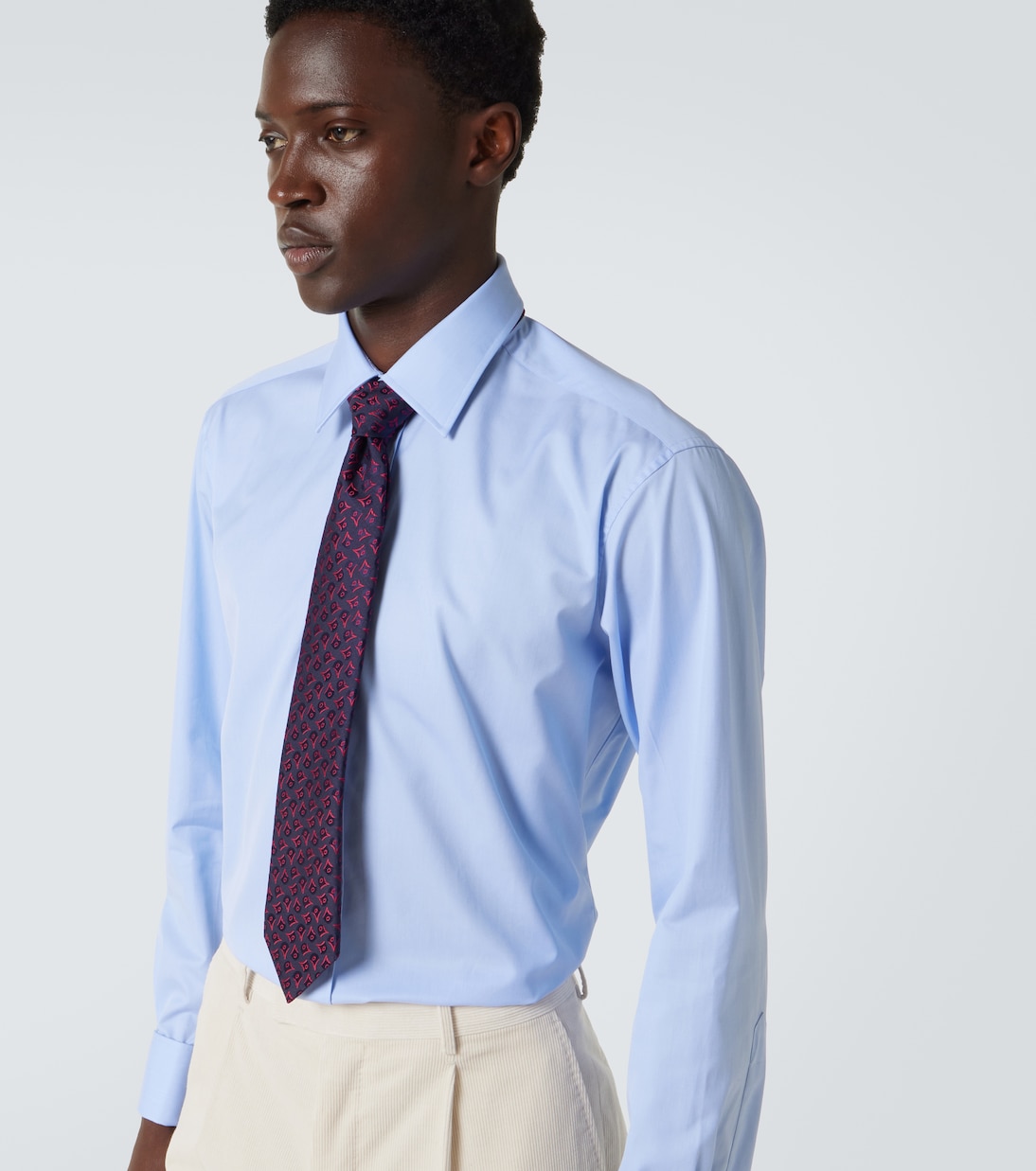 Основанный в 1838 году, Charvet по праву считается первым в мире магазином рубашек. Бренд продолжает традиции исключительно качественного и неподвластного времени дизайна, представляя эту классическую хлопковую рубашку. Модель дополнена острым воротником и манжетами на одной пуговице.