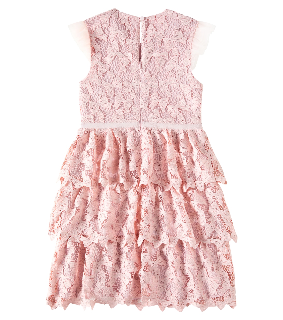 Платье с кружевными ярусами и бантом Self-Portrait Kids, розовый