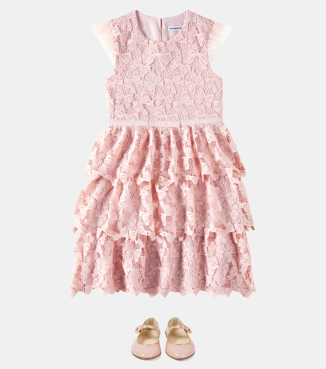 Платье с кружевными ярусами и бантом Self-Portrait Kids, розовый 42 601₽
