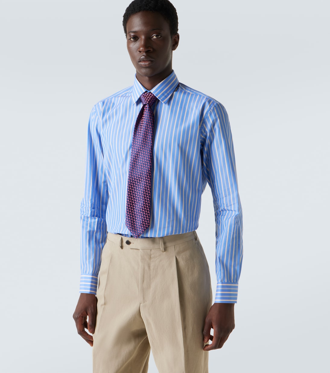 Основанный в 1838 году, Charvet по праву считается первым в мире магазином рубашек. Этот жаккардовый галстук синего и красного цветов, выполненный из роскошного шёлка, продолжает традиции бренда, предлагая исключительно качественные рубашки и галстуки.