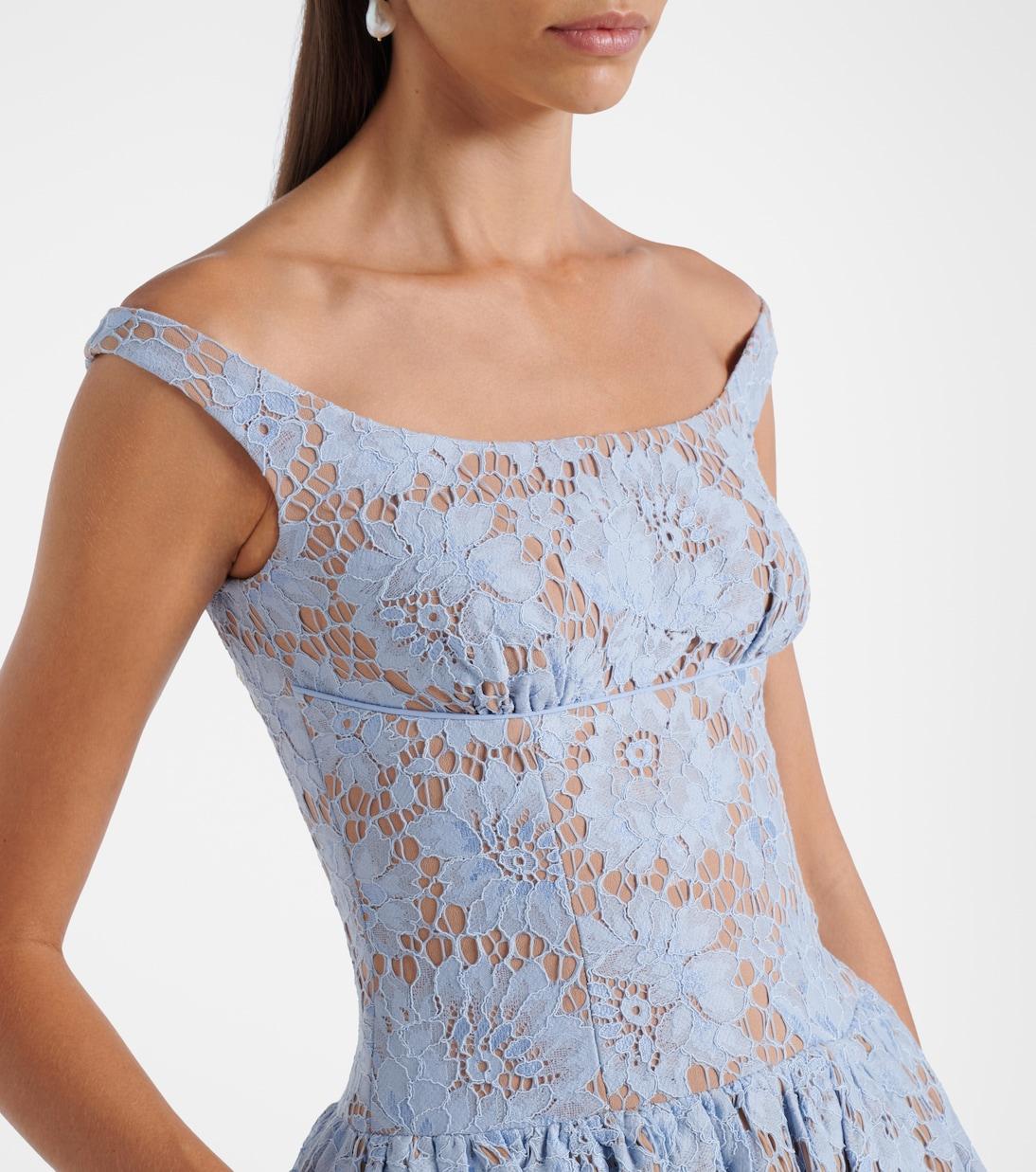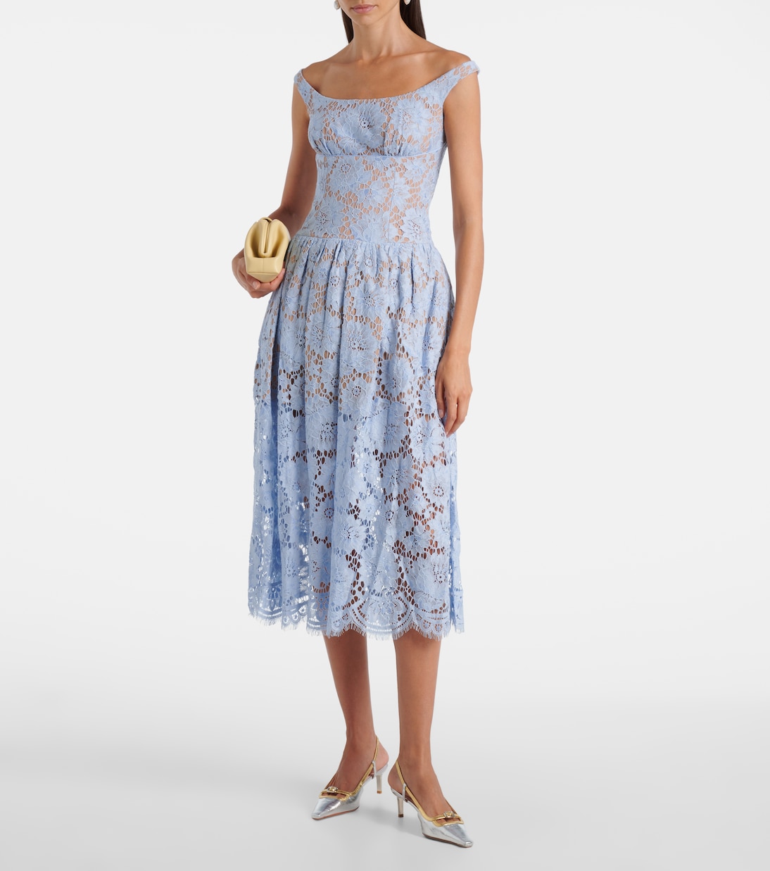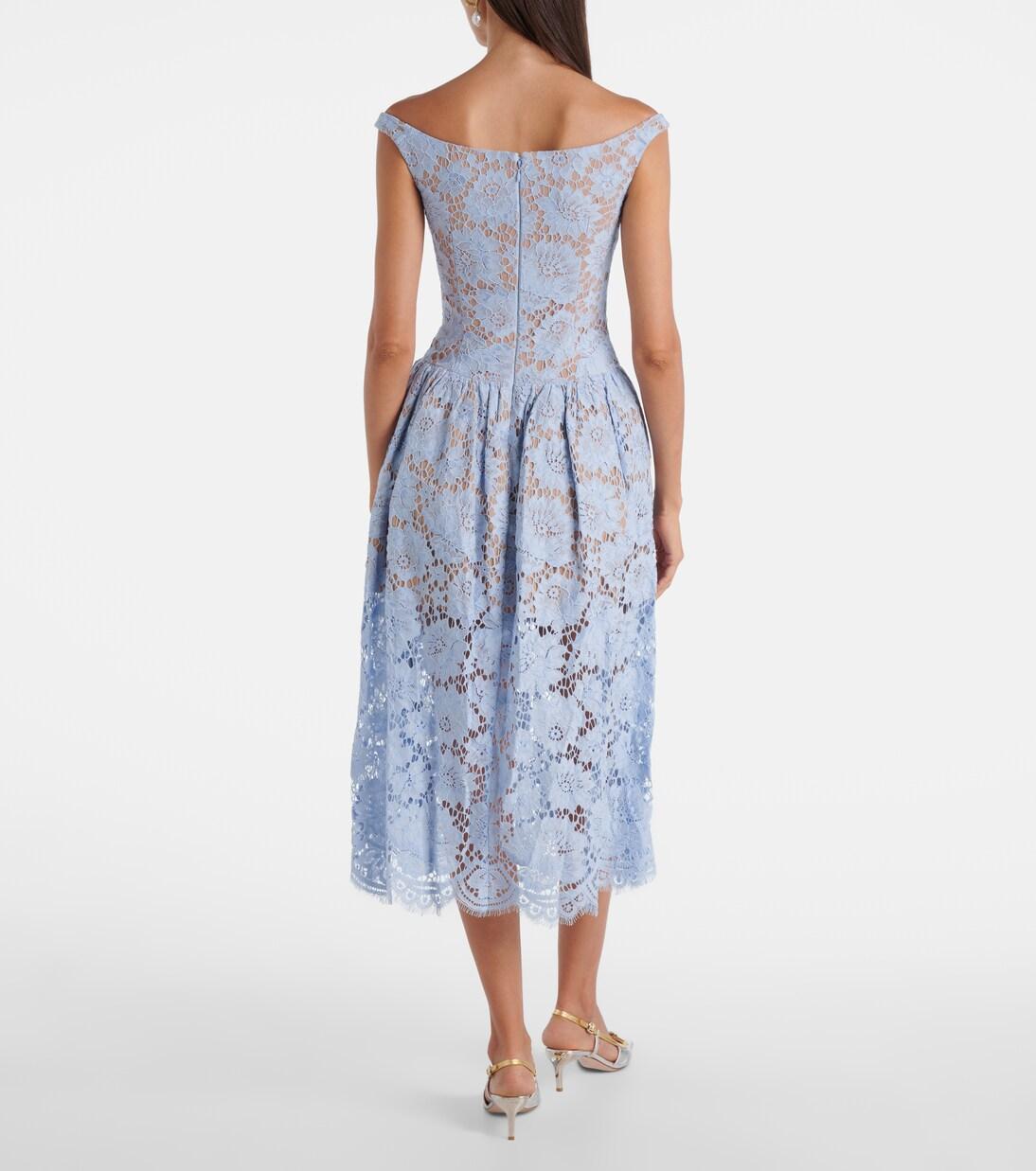 Собранное кружевное платье миди Self-Portrait, синий 46 293₽
