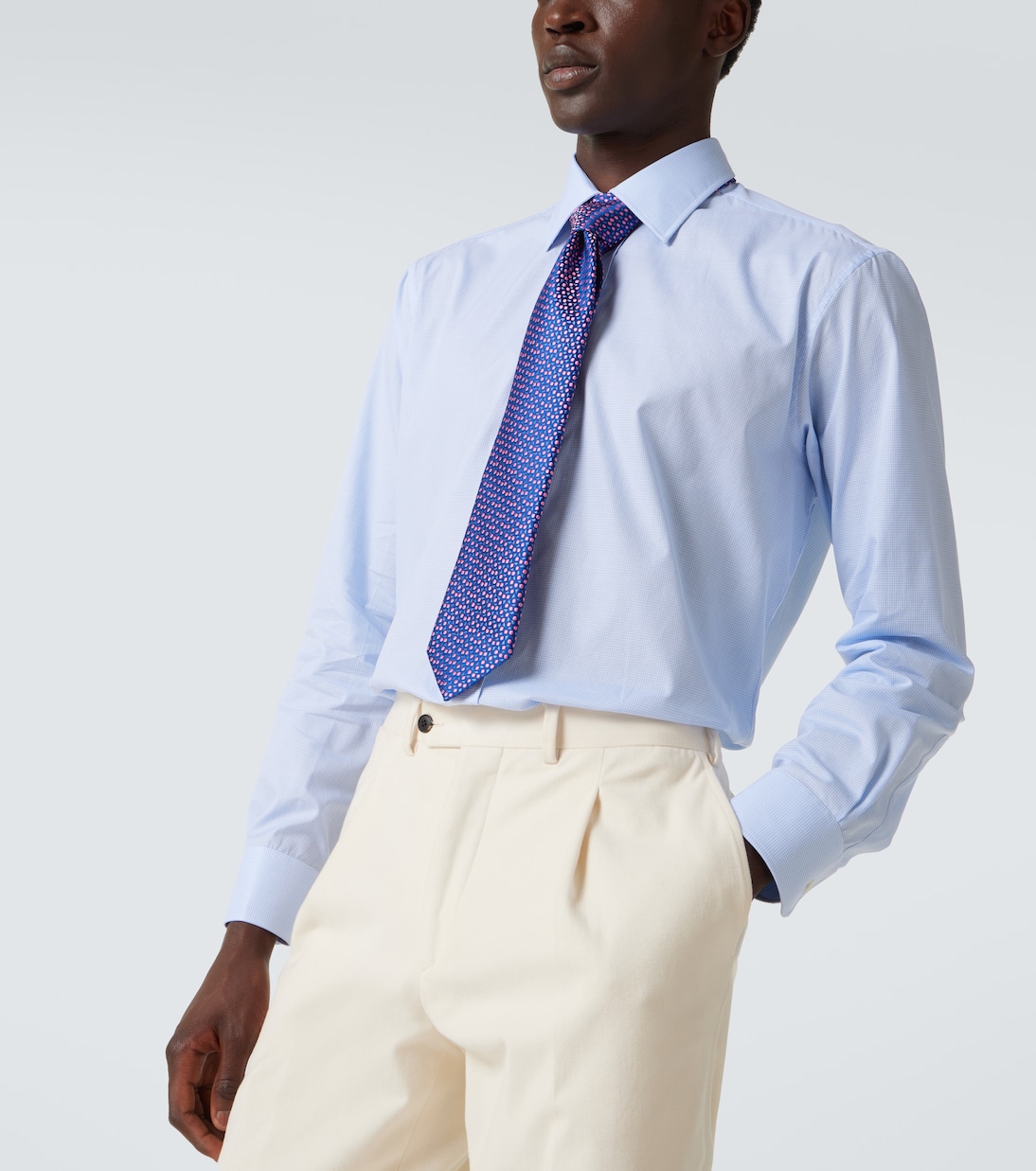 Основанный в 1838 году, бренд Charvet продолжает традиции парижской изысканности благодаря мастерству кроя и использованию высококачественных материалов. Эта рубашка из тонкого хлопкового поплина отражает преданность бренда традиционному мастерству и непреходящей элегантности. Модель дополнена острым воротником и манжетами на одной пуговице.