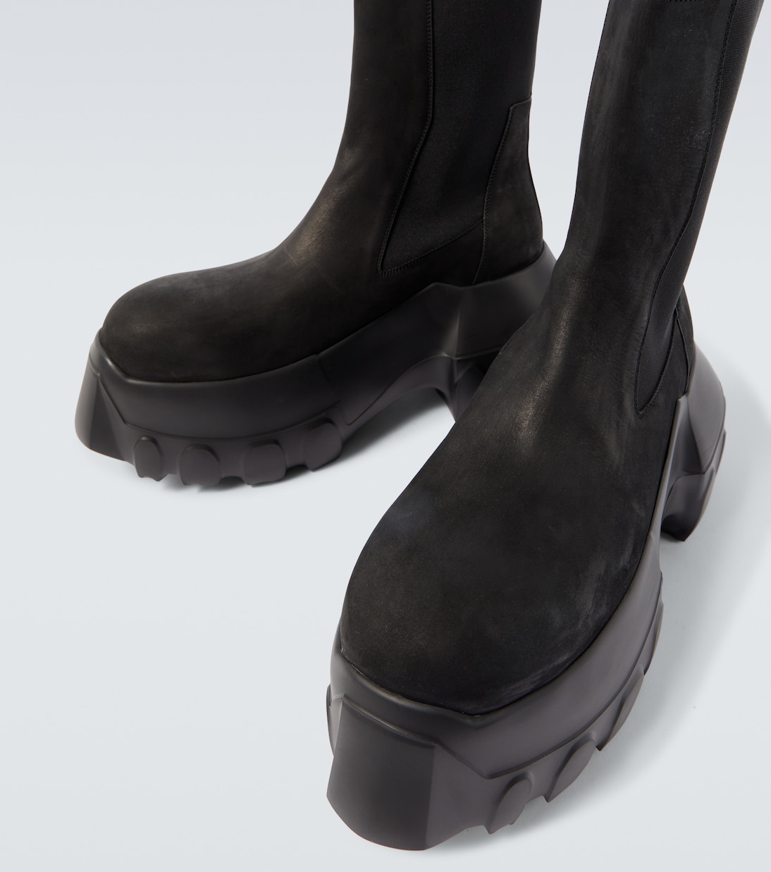 Ботинки Beatle Mega Tractors Chelsea, демонстрирующие неповторимый стиль Рика Оуэнса, искусно изготовлены из нубука. Эта пара имеет резиновую подошву на платформе, эластичные вставки по бокам и хлястики.