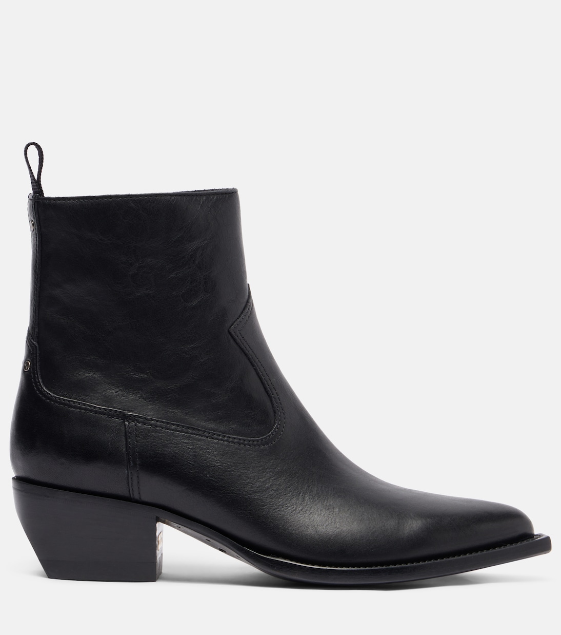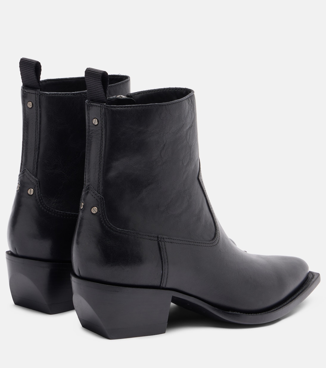 Ботинки Debbie от Golden Goose с острыми носами и расклешенным каблуком высотой 45 мм воплощают дух вестерн. Изготовленные в Италии из кожи, эти ботинки украшены заклепками сзади и застежками-молниями по бокам.