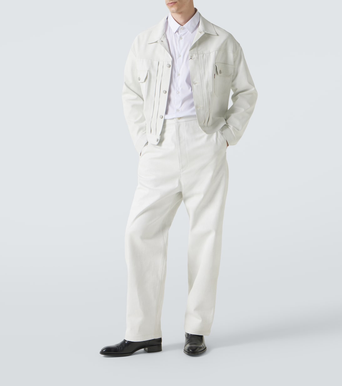 Эти джинсы от Junya Watanabe быстро станут неотъемлемой частью вашего повседневного гардероба. Они сшиты из прочного хлопкового денима с покрытием и отличаются классическим прямым кроем.