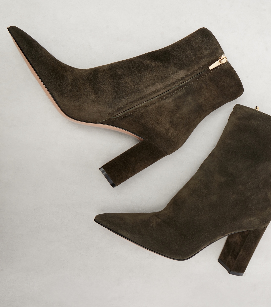 Ботинки Lyell от Gianvito Rossi добавят очарования любому образу благодаря острому носу и замшевой отделке. Эта пара на блочном каблуке высотой 85 мм дополнена фирменной лентой, придающей обуви особый шарм.