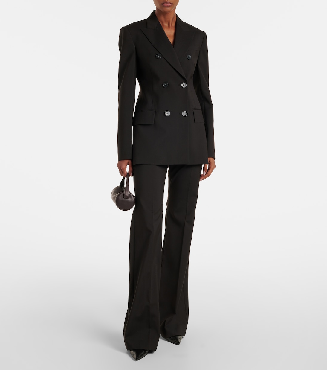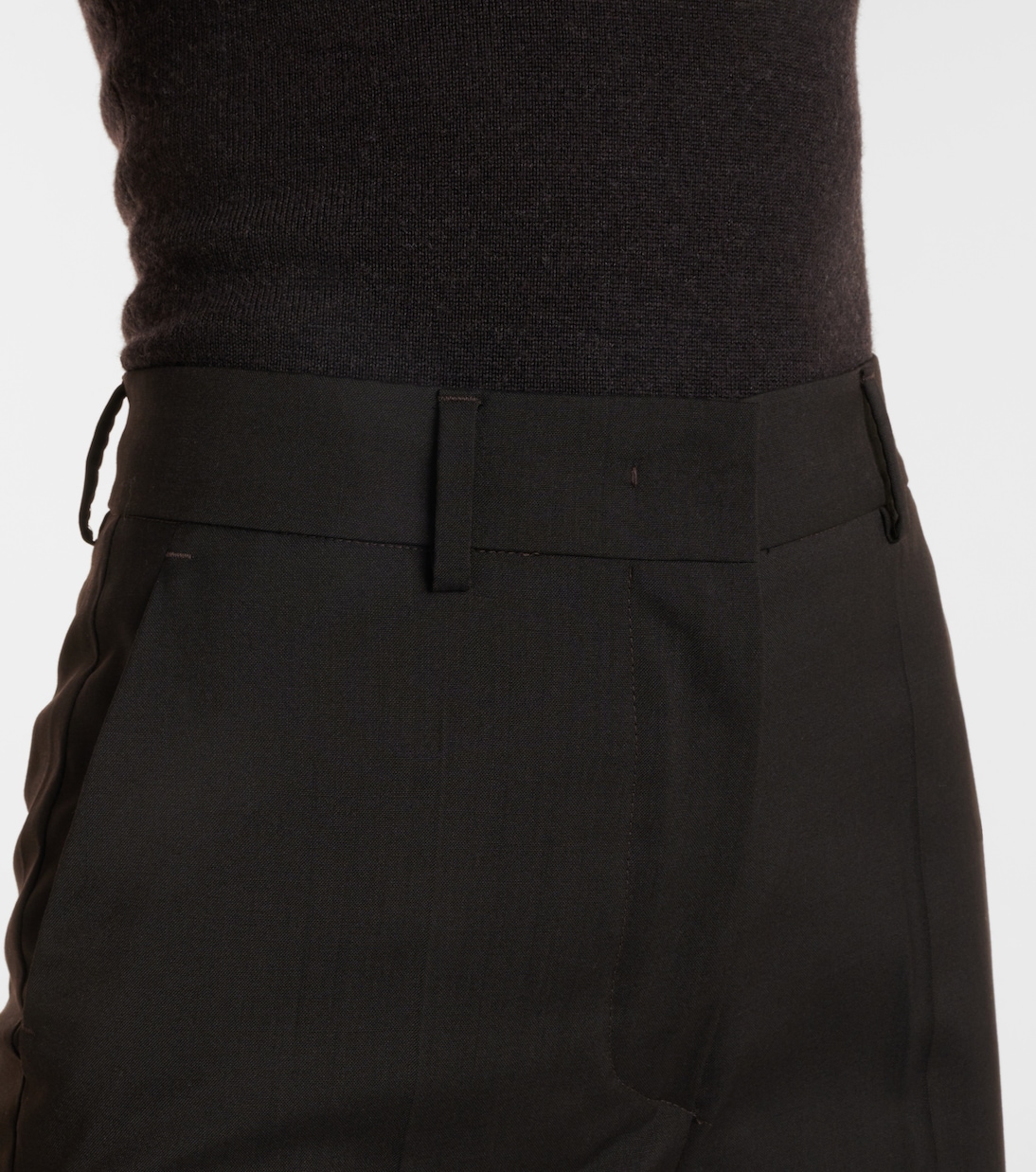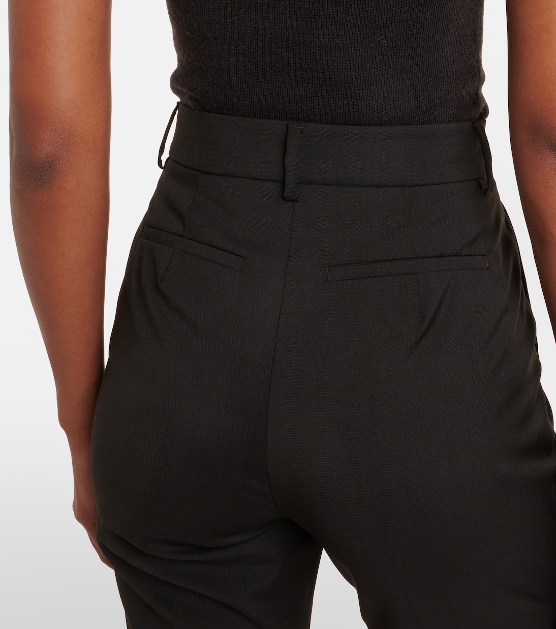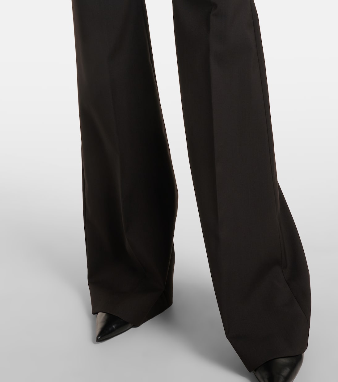 Основанный на принципах классического кроя и экспериментов, бренд Sportmax сочетает современный городской стиль со спортивными силуэтами. Брюки-клеш Hangar из натуральной шерсти имеют косые и прорезные карманы.