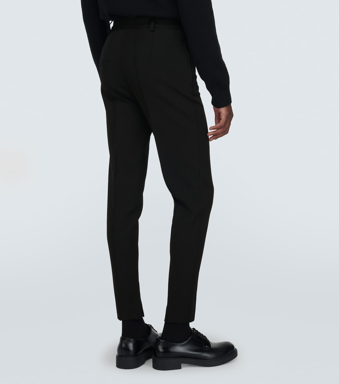 Эти зауженные к низу брюки из черного габардина от Prada имеют минималистичный дизайн и потайную застежку на крючок на талии. Модель, вдохновленная подиумом, отличается эластичностью и заутюженными стрелками.