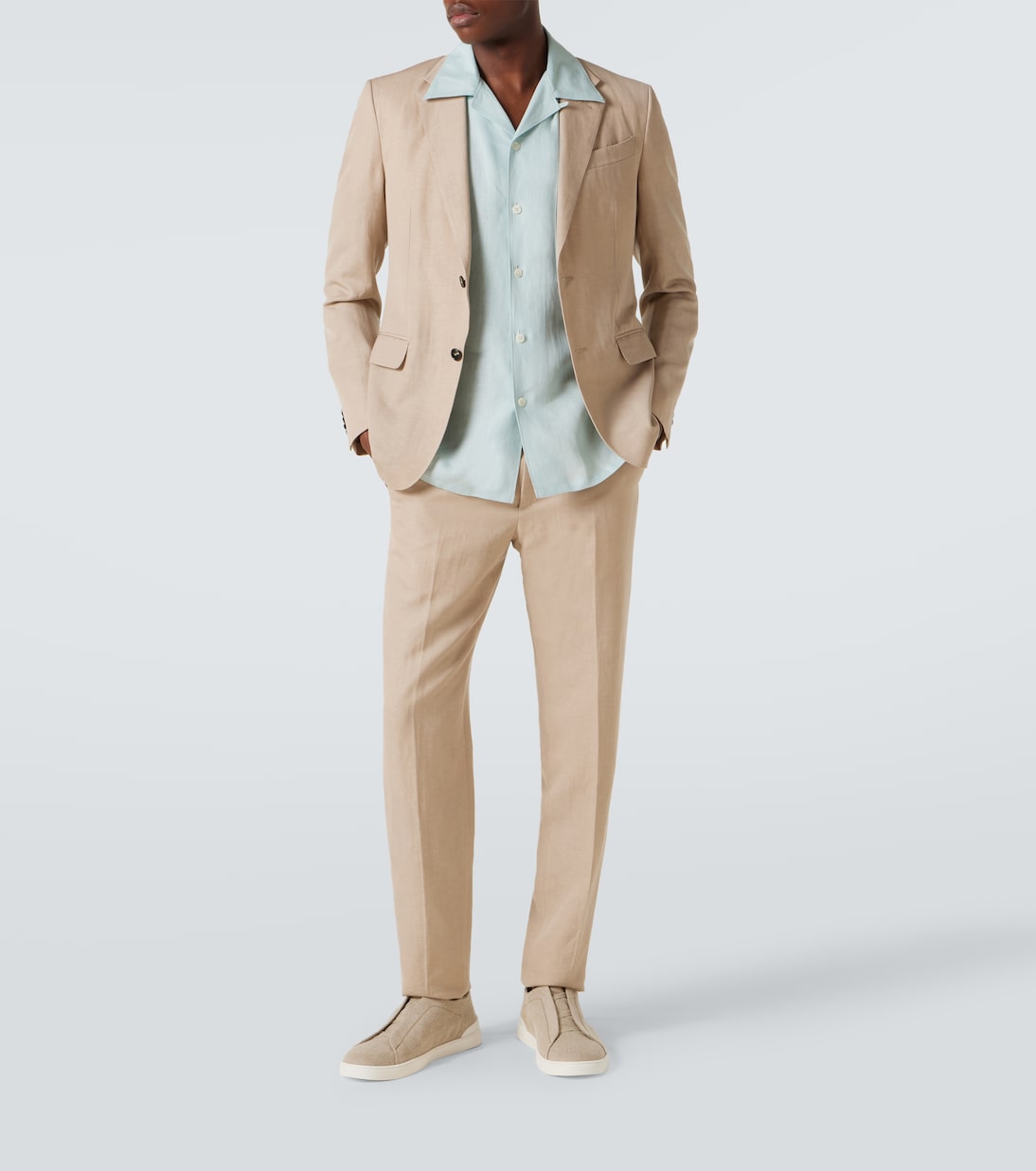 Основанный с целью создания лучших в мире тканей, бренд Zegna сегодня является ведущим брендом роскошной и инновационной мужской одежды. Рубашка для боулинга сшита из культового льна бренда и застегивается на пуговицы.