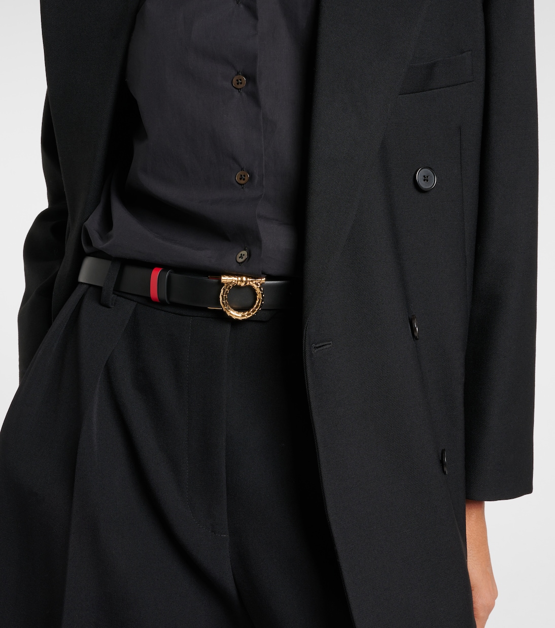 Ремень Gancini из кожи реверсивный Ferragamo, Nero/Flame Red