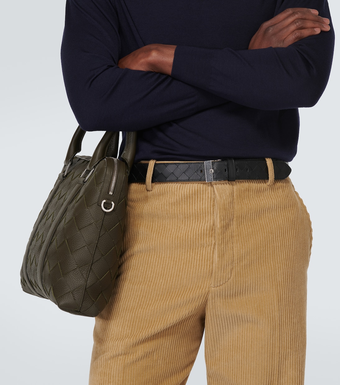 Кожаный ремень Intrecciato Bottega Veneta, Black-Silver 76 057₽