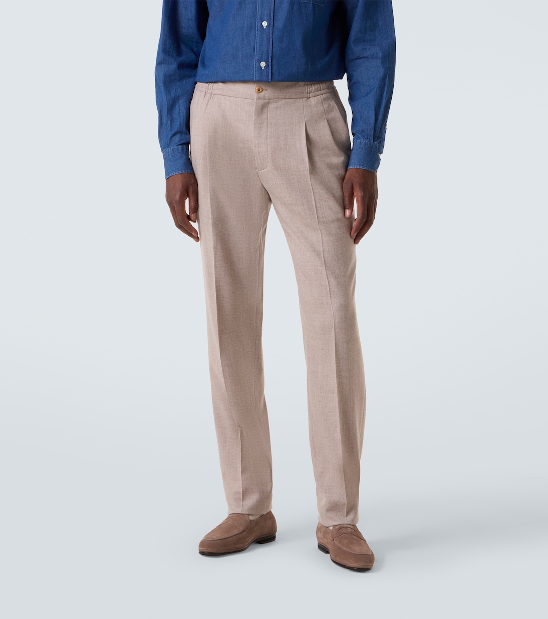 Бренд Rubinacci, основанный на неаполитанских традициях портновского искусства, славится своим изысканным мастерством, непринужденной элегантностью и безупречным вниманием к деталям. Эти зауженные брюки из натуральной шерсти с необработанным подолом и эластичным поясом на шнурке позволяют регулировать посадку.