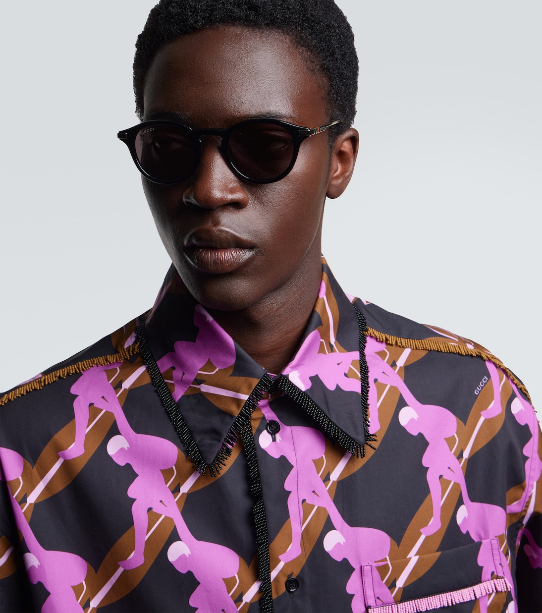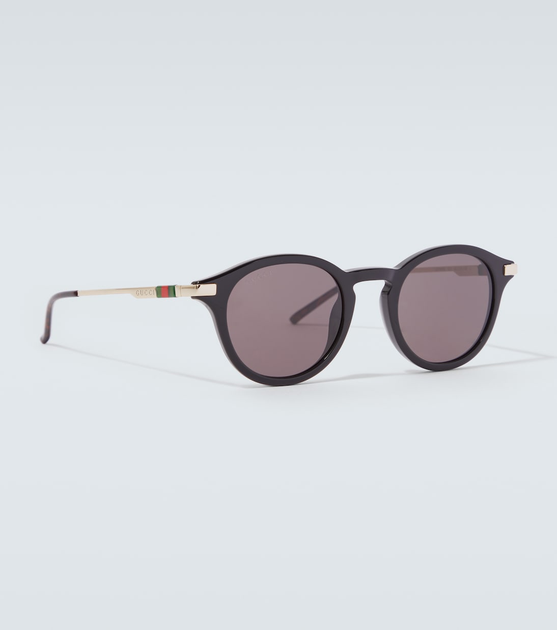 Эти круглые солнцезащитные очки Gucci с тонированными линзами изготовлены в Японии. Они украшены буквами логотипа и культовой полосой Web-Stripe.