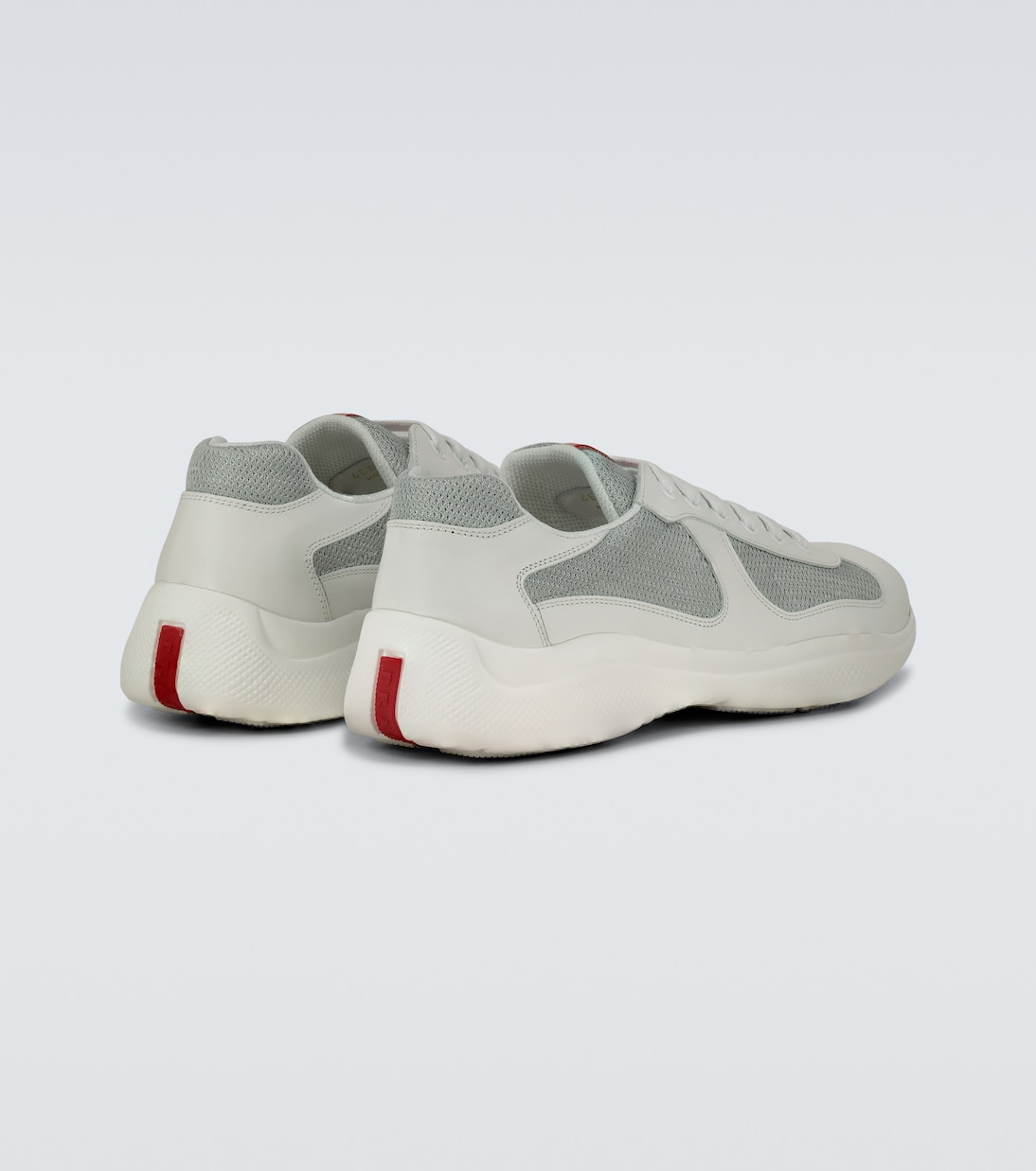 Эти культовые белые кроссовки Prada изготовлены из кожи и технической ткани, характеризуются логотипом на язычке и массивной резиновой подошвой.