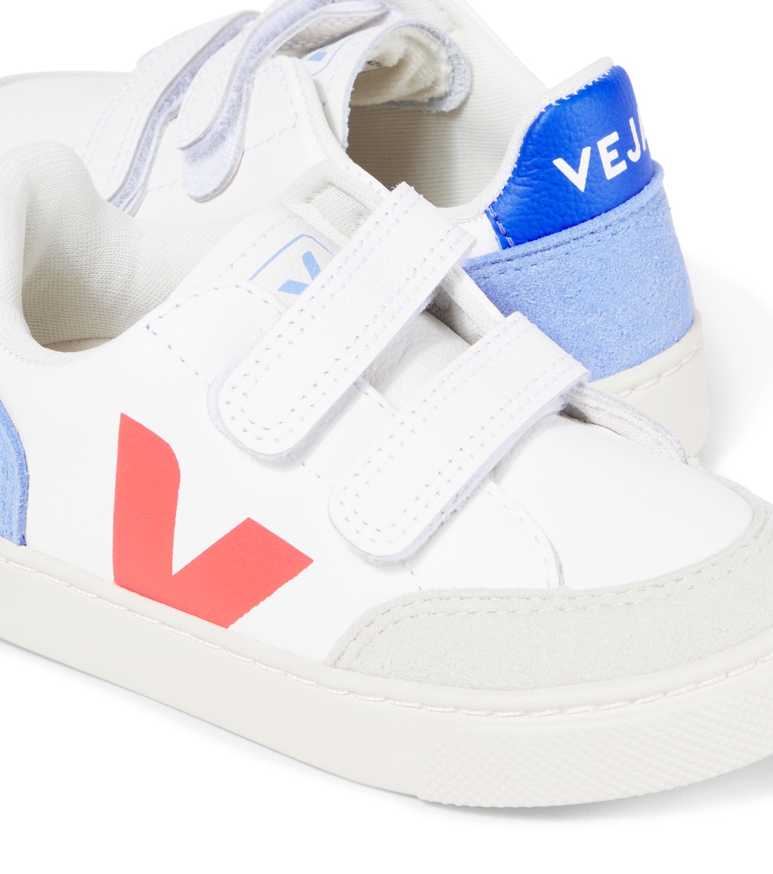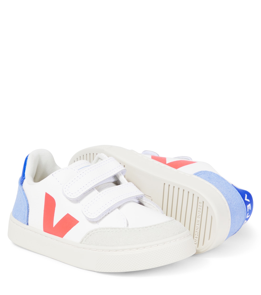 В Veja Kids вы найдете фирменные модели в миниатюрных размерах, например, кроссовки V-12. Игривый дизайн, выполненный из мягкой кожи, дополнен яркими акцентами и удобными застежками VELCRO.