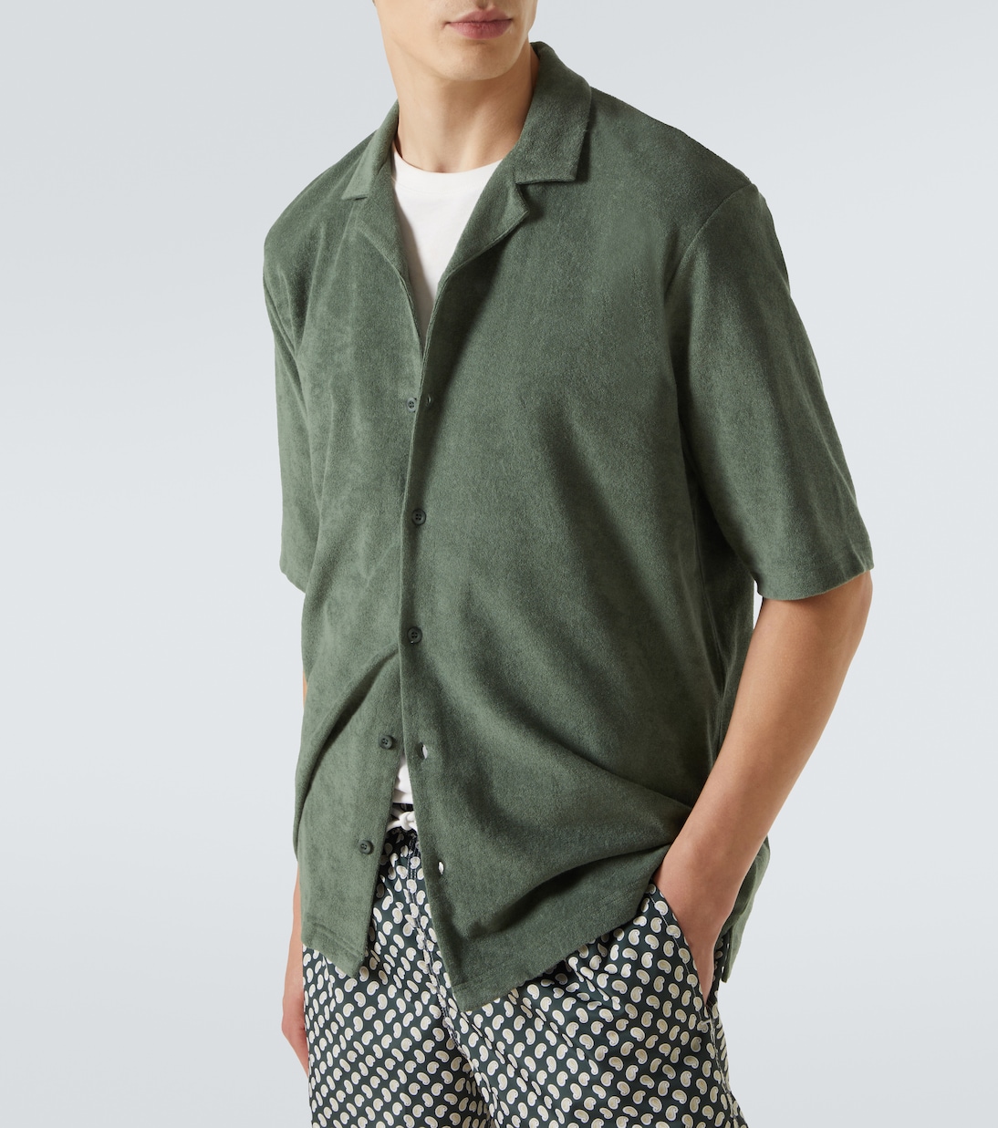 Хлопковая махровая рубашка для боулинга Sunspel, Dusk Green 23 638₽