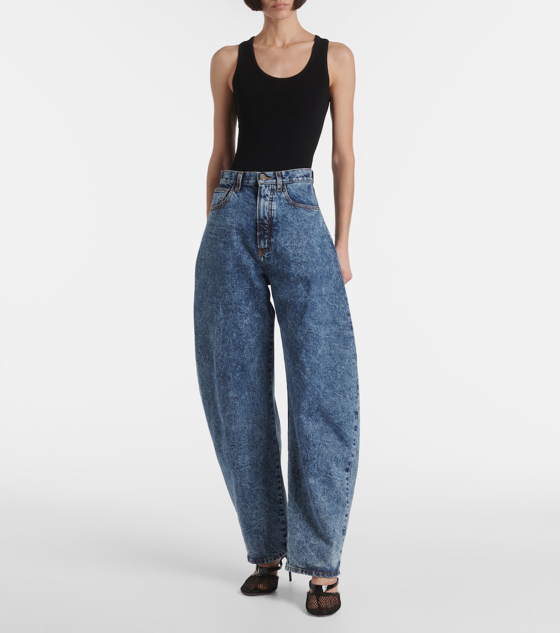 Откройте для себя мир гламура с туфлями Infradito в сеточку от Alaïa. Туфли на шпильке 90 мм изготовлены в Италии из глянцевой лакированной кожи и оснащены фиксирующими ремешками.