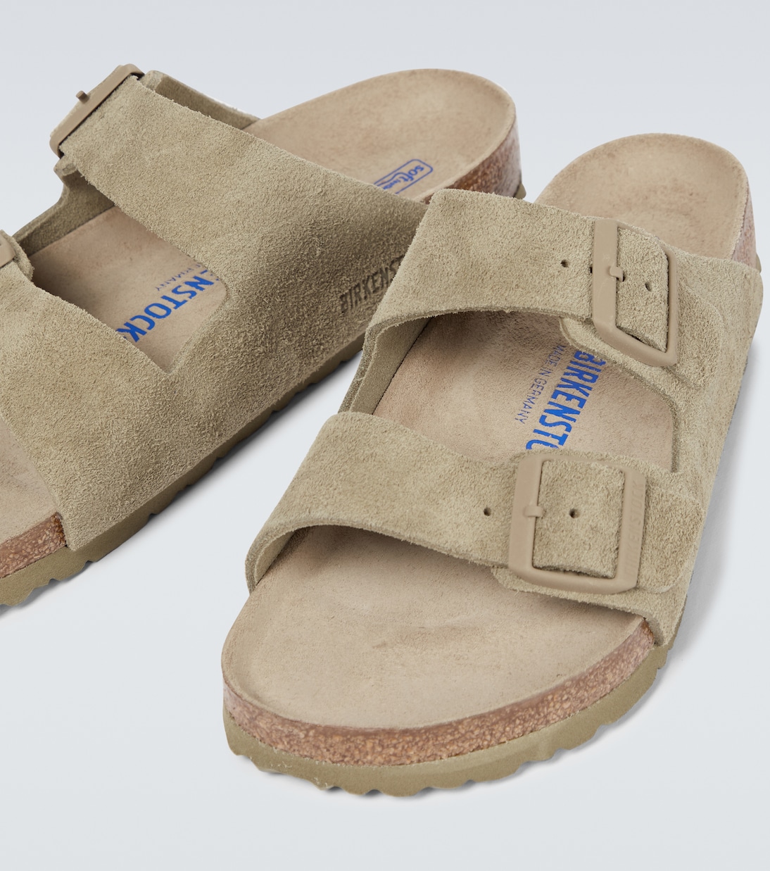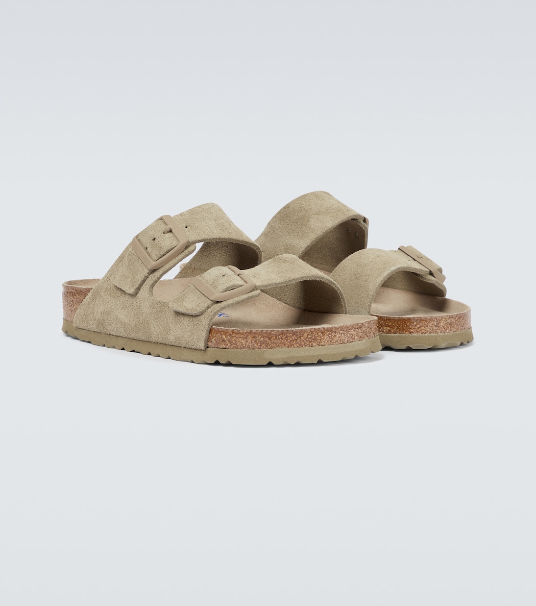 Эти сандалии BIRKENSTOCK представлены в выцветшей расцветке хаки с фирменными двойными пряжками-ремешками бренда и формованной пробковой промежуточной подошвой для комфорта и легкости.