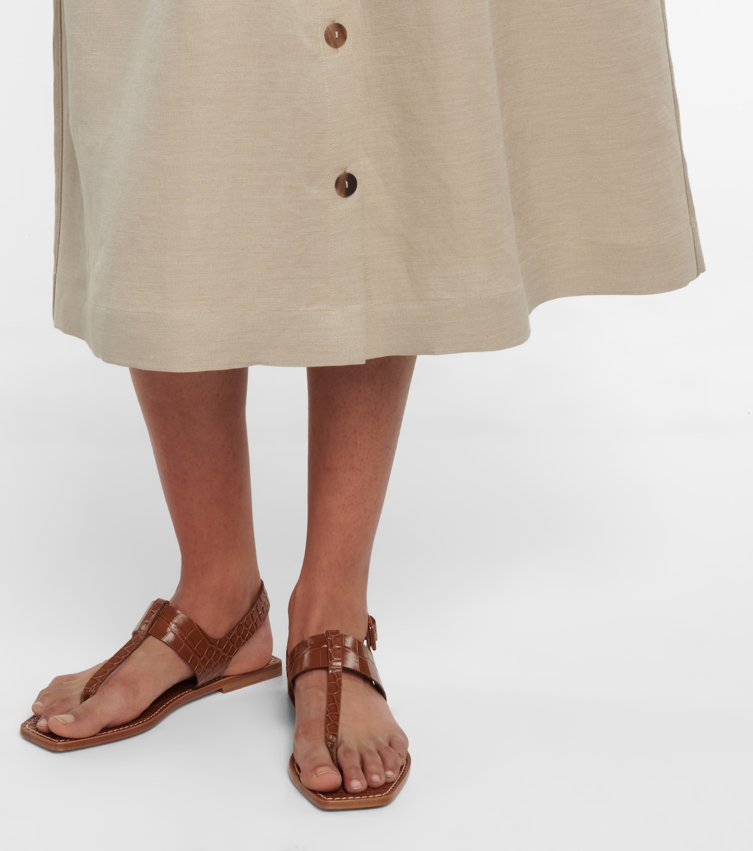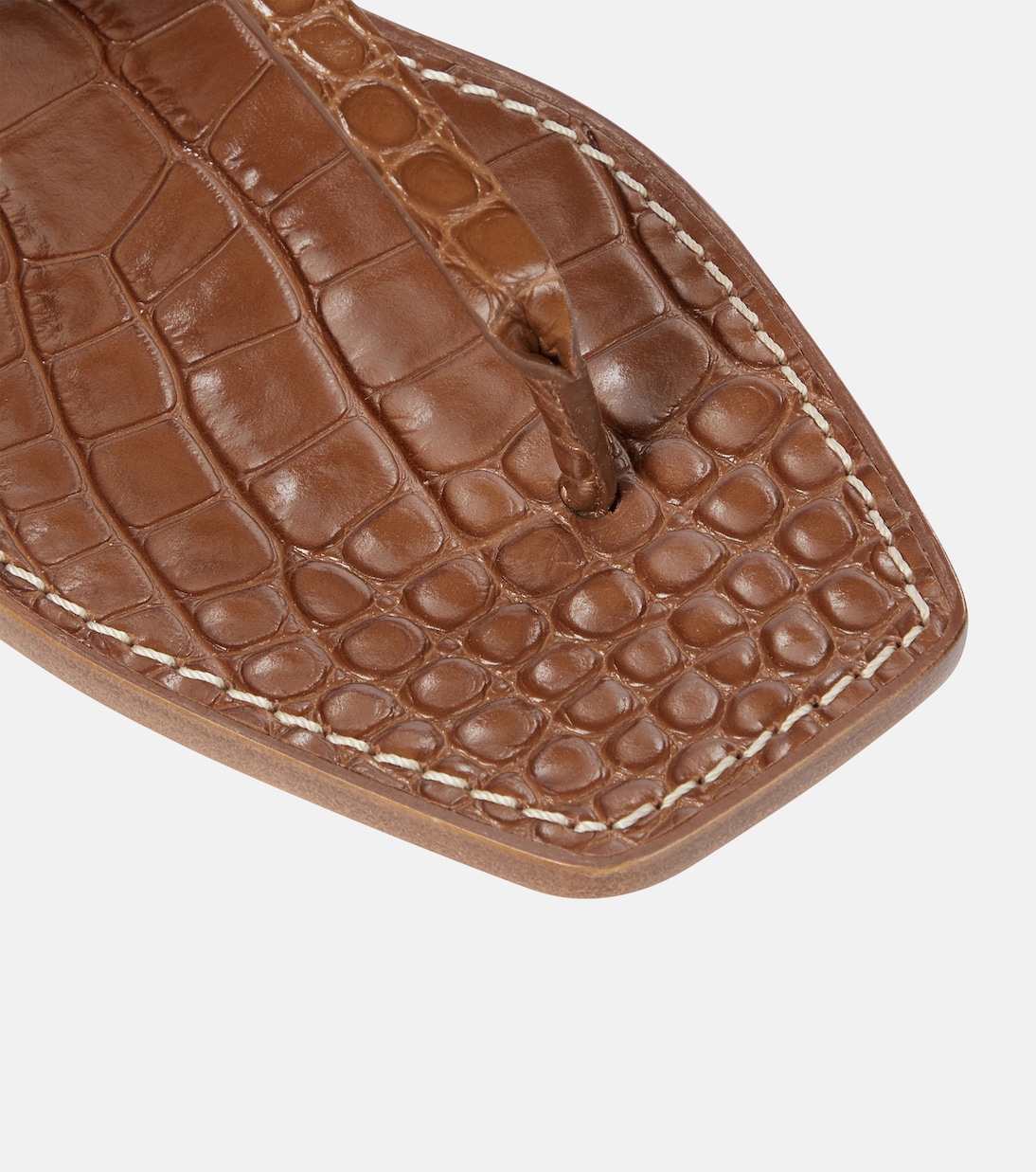 Эти светло-коричневые босоножки Christian Louboutin, изготовленные в Италии из кожи, украшены тисненым мотивом, имитирующим крокодиловую кожу. Ремешки с пряжками на щиколотке дополняют эту модель, дополненную квадратным носком и плоской кожаной подошвой.