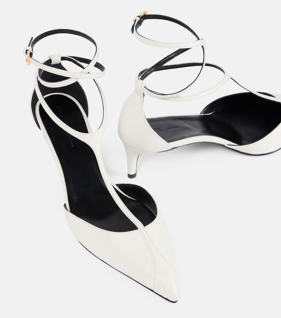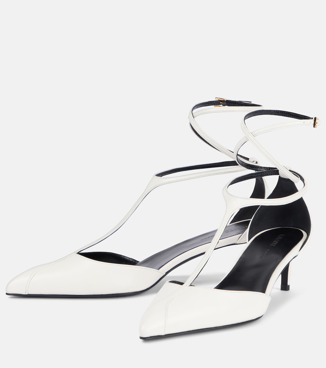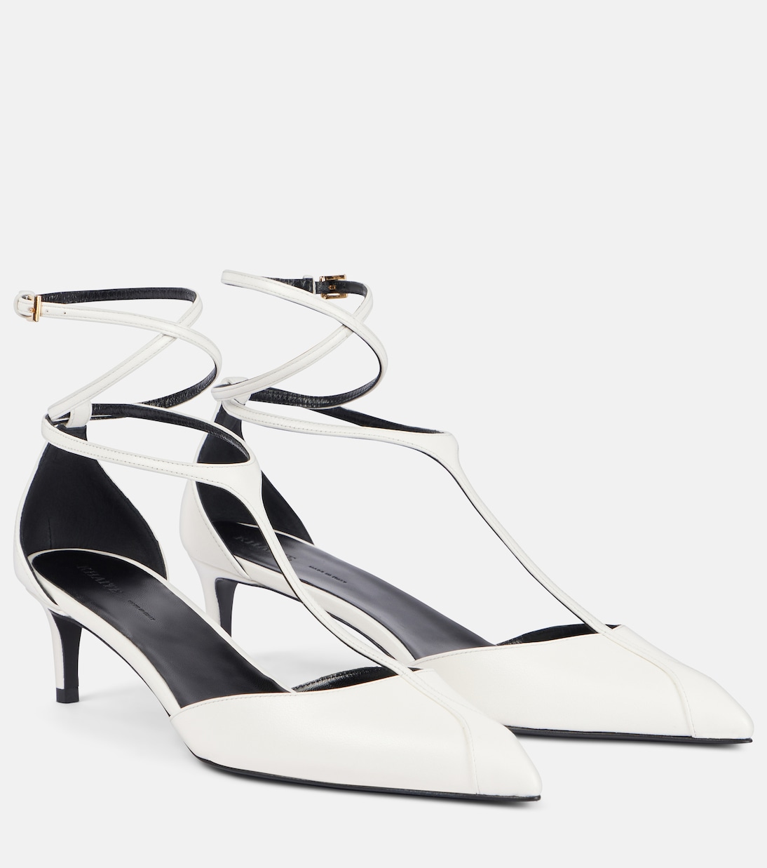 Ощутите элегантность с ремешками в туфлях Mia от Khaite. Туфли выполнены из мягкой кожи, а Т-образный ремешок удлинён. Ремешки фиксируются на щиколотках золотистыми пряжками.
