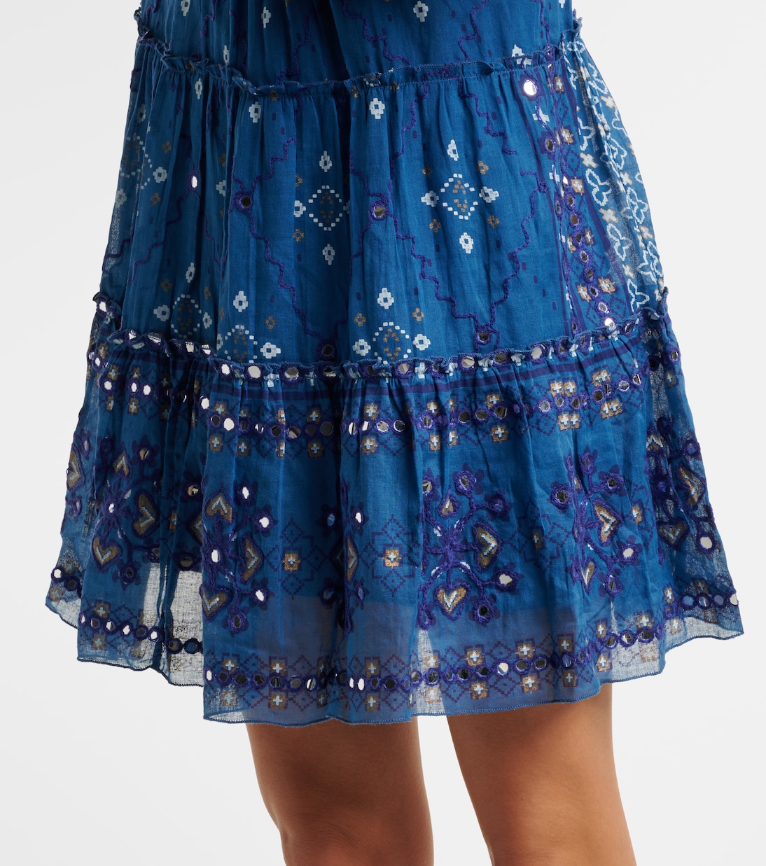 Хлопковое мини-платье с принтом Juliet Dunn, Peacock
