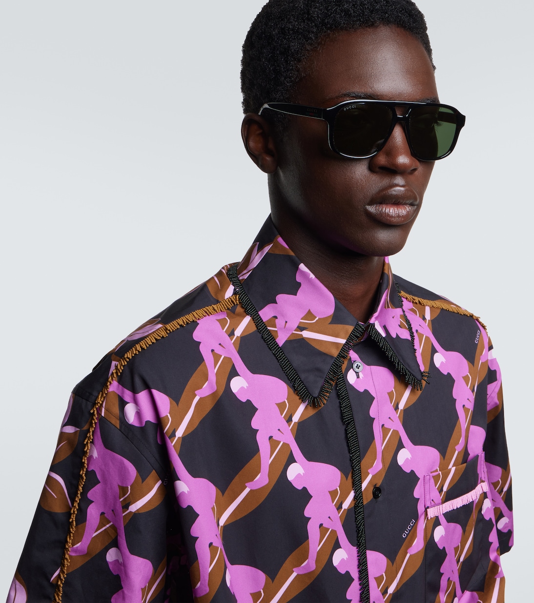 Эти солнцезащитные очки Gucci, выполненные в Италии, имеют силуэт «авиатор». Они имеют квадратную оправу слегка увеличенной формы и тонированные линзы.