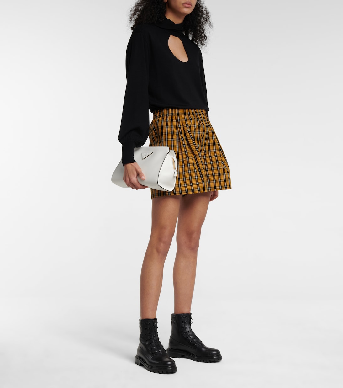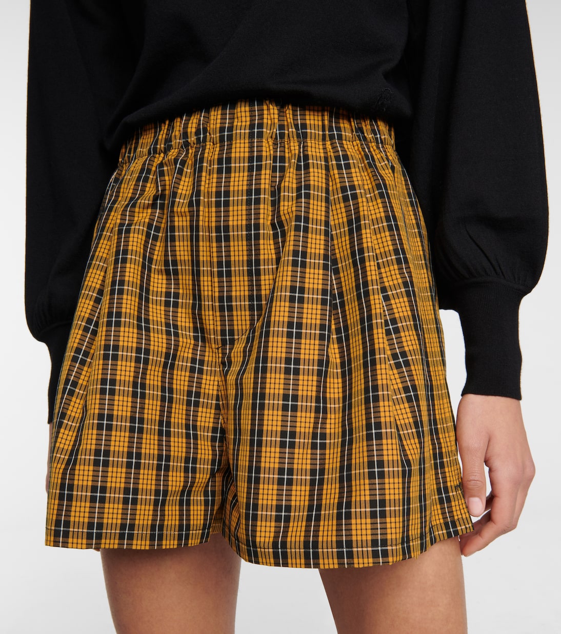 Пара клетчатых хлопковых шорт, например, эти оранжевые от Miu Miu, — отличный вариант для тёплого времени года. Высокая посадка, широкие штанины и вытачки придают им изысканный вид. Дополните образ белой блузкой с воротником и туфлями Mary Jane, чтобы подчеркнуть очарование 70-х, которым славится этот бренд.