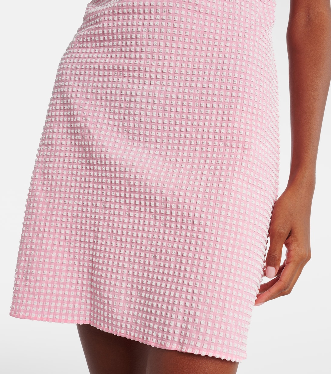 В этом мини-платье от Hunza G вы сможете легко перейти от бассейна к ужину. Платье выполнено из быстросохнущего, легкого сирсакера и украшено очаровательным принтом в клетку «гингем» и регулируемыми завязками на шее.