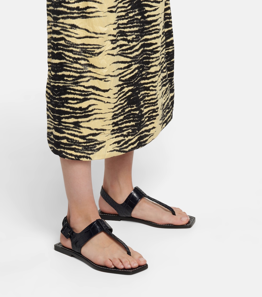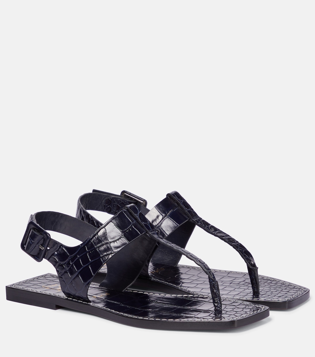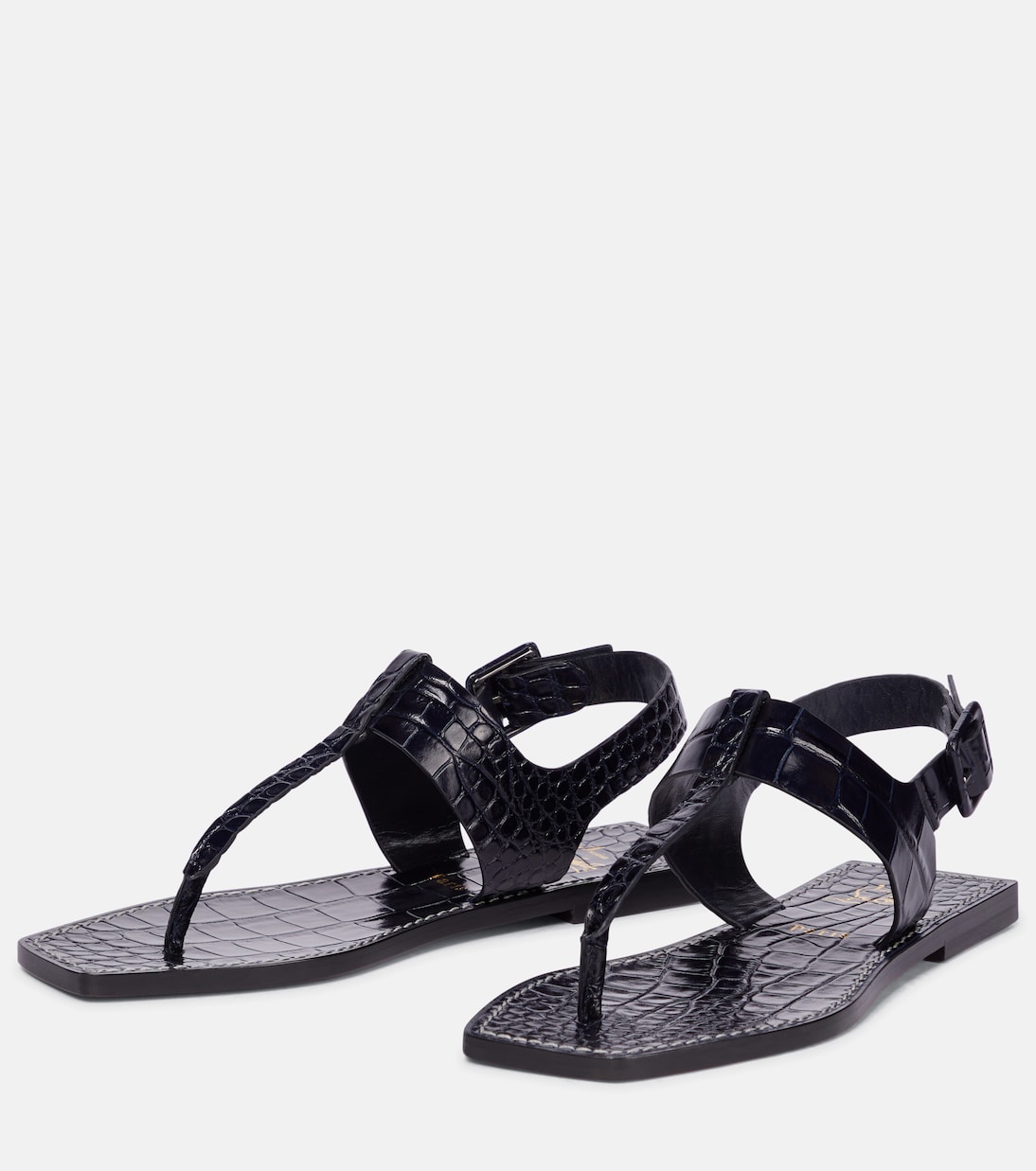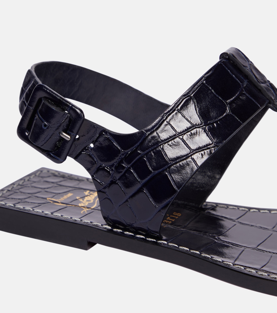 Эти темно-синие босоножки Cubongo от Christian Louboutin, выполненные из блестящей кожи с крокодиловым эффектом, идеально подходят для теплой погоды. Они отличаются квадратным открытым носком, ремешками-ремешками и пряжками на щиколотках. Они изготовлены из блестящей кожи с крокодиловым эффектом, что придает им роскошный вид.
