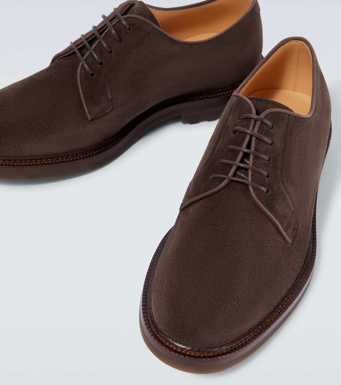 Эти туфли Brunello Cucinelli Derby изготовлены в Италии из мягкой замши. Универсальные и одновременно элегантные, эти туфли на шнуровке имеют лёгкую подошву со спортивным рисунком.