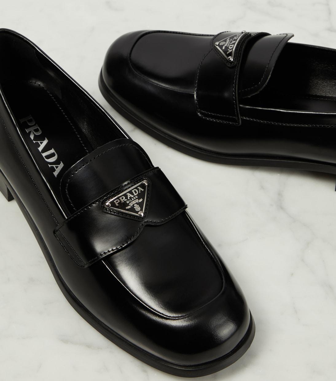Пенни-лоферы Prada воплощают собой непреходящую изысканность. Изготовленные из изысканной блестящей кожи и украшенные эффектной треугольной пластинкой с логотипом и кожаным ремешком сверху, они воплощают непревзойденную элегантность.