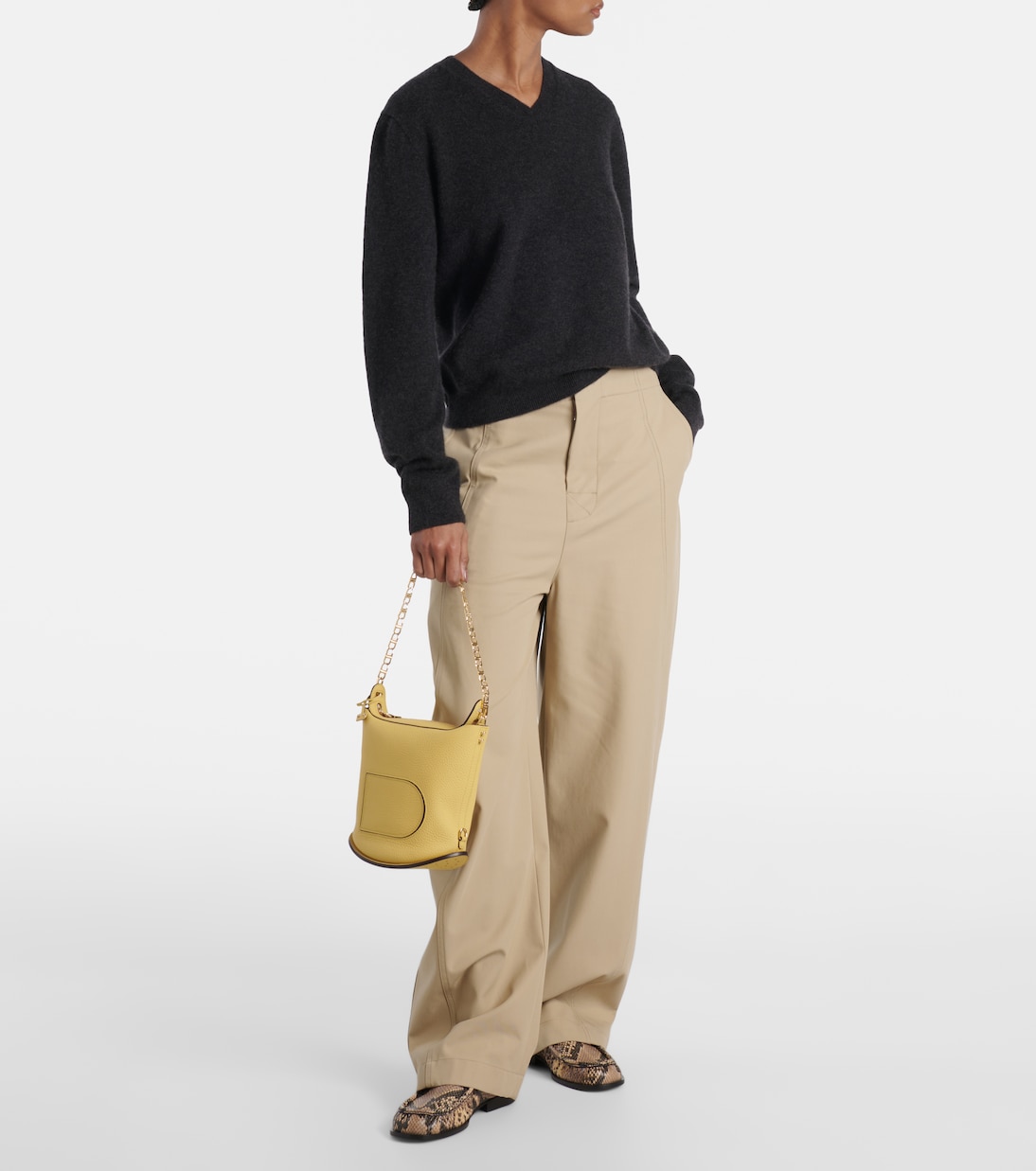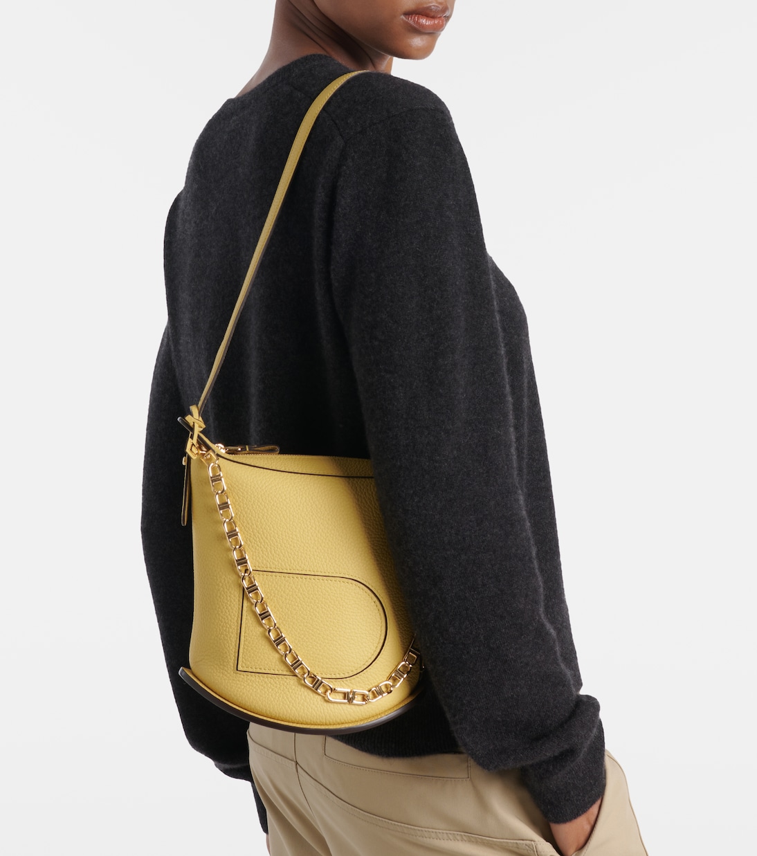 Вдохновленная классической сумкой Pin, которая отличается лёгкостью, гибкостью и поэтичной простотой, сумка Pin Twist предлагает свежий взгляд на культовую модель. Сумка изготовлена из мягкой кожи Taurillon цвета «пыльца» (Pollen) и дополнена характерным D-образным карманом и перфорированной подошвой, характерными для серии Pin. Сумка дополнена золотой фурнитурой и съёмными плечевыми ремнями, которые позволяют создавать до пяти универсальных образов.