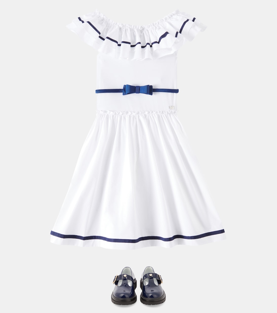 Платье с рюшами Monnalisa, Bianco+Blu 24 718₽