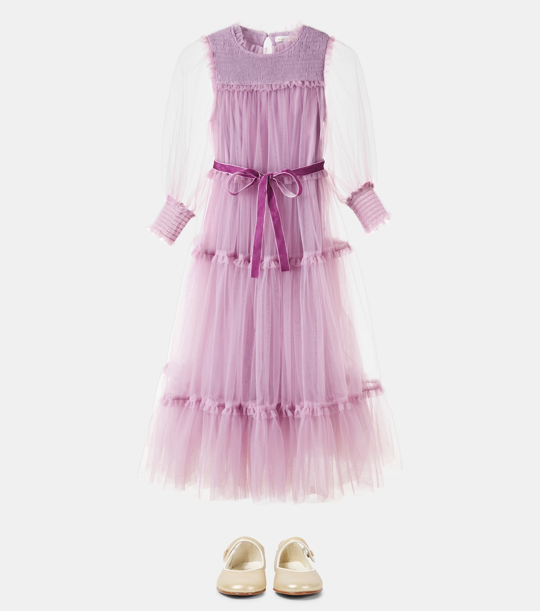 Платье Grace от C'Era Una Volta, словно сошедшее со страниц сказки, обещает вашим маленьким модницам долгожданную и счастливую жизнь. Это многоярусное платье из воздушного тюля дополнено очаровательным бантом на талии.