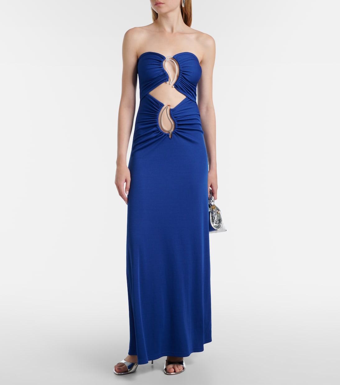Платье макси Paisley Disconnect без бретелек от Christopher Esber отличается струящимся силуэтом с соблазнительными вырезами спереди. Этот фасон дополнен мягкими сборками и фирменным металлическим узором пейсли.