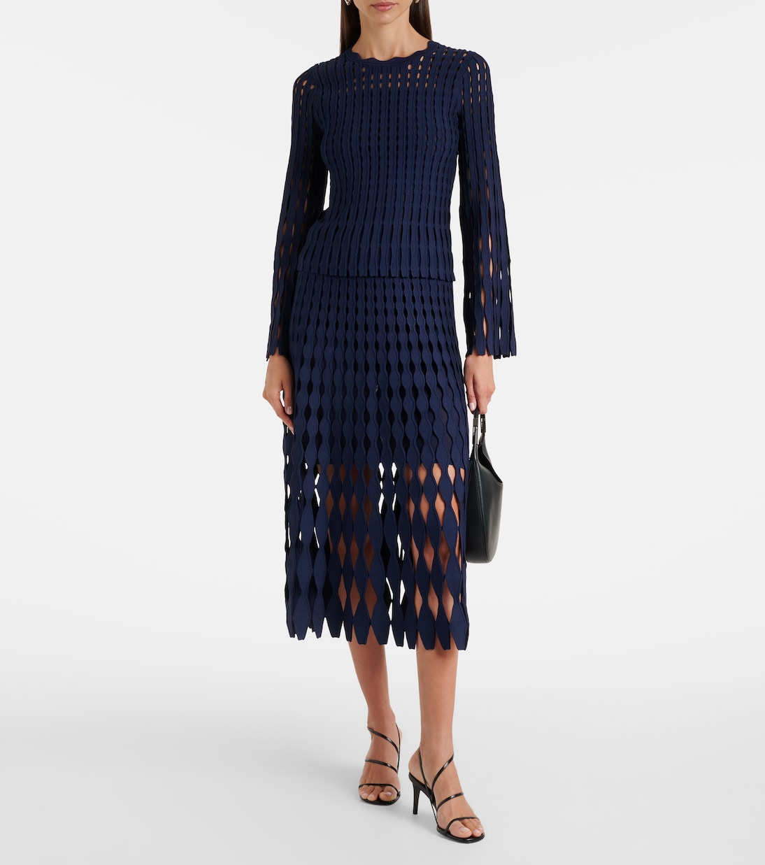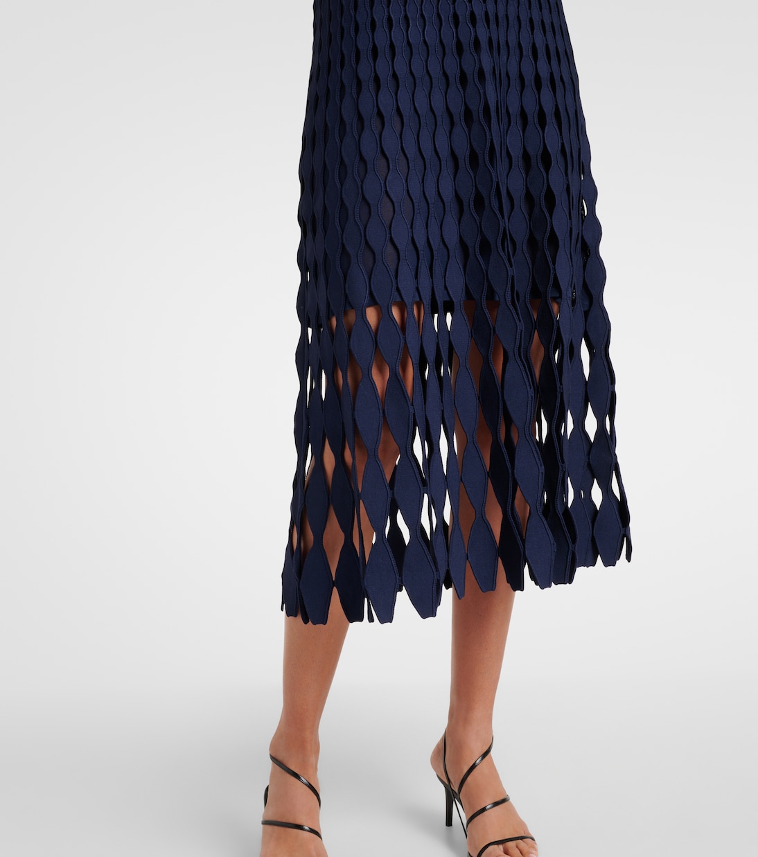 Вдохновляясь скульптурой и архитектурой, Simkhai создает впечатляющие модели, сочетающие инновационный крой с ручной отделкой. Юбка миди Wilma с привлекательным ажурным кроем идеально подходит для вечерних прогулок по городу или отдыха на свежем воздухе у моря.