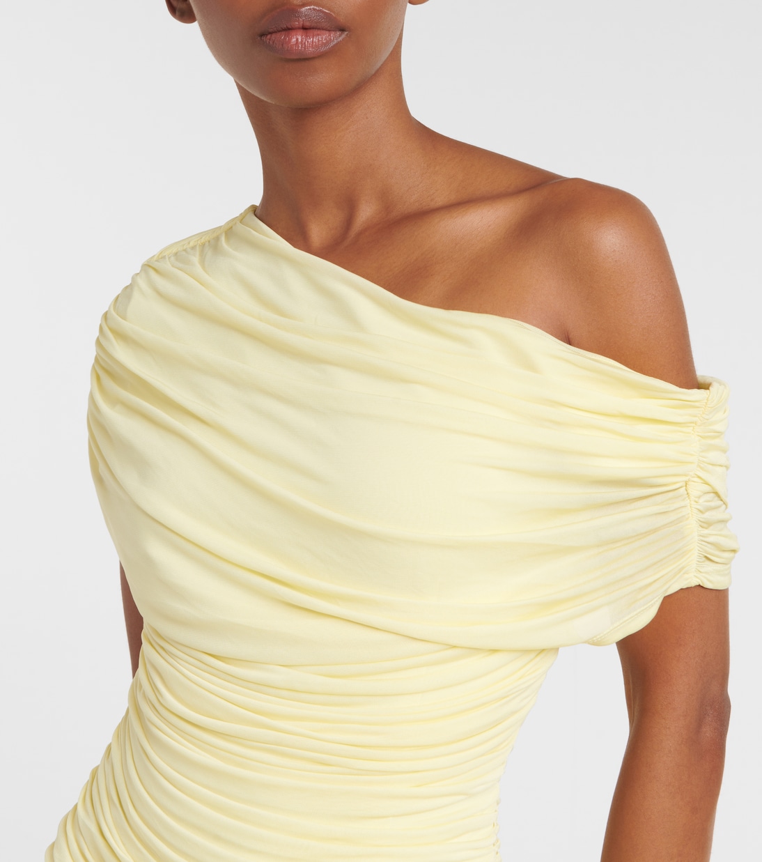 Платье макси Rhiannon от Simkhai обещает непринужденную изысканность. Изготовлено из мягкого трикотажного полотна, имеет присборенный крой для тактильных ощущений и асимметричный вырез.
