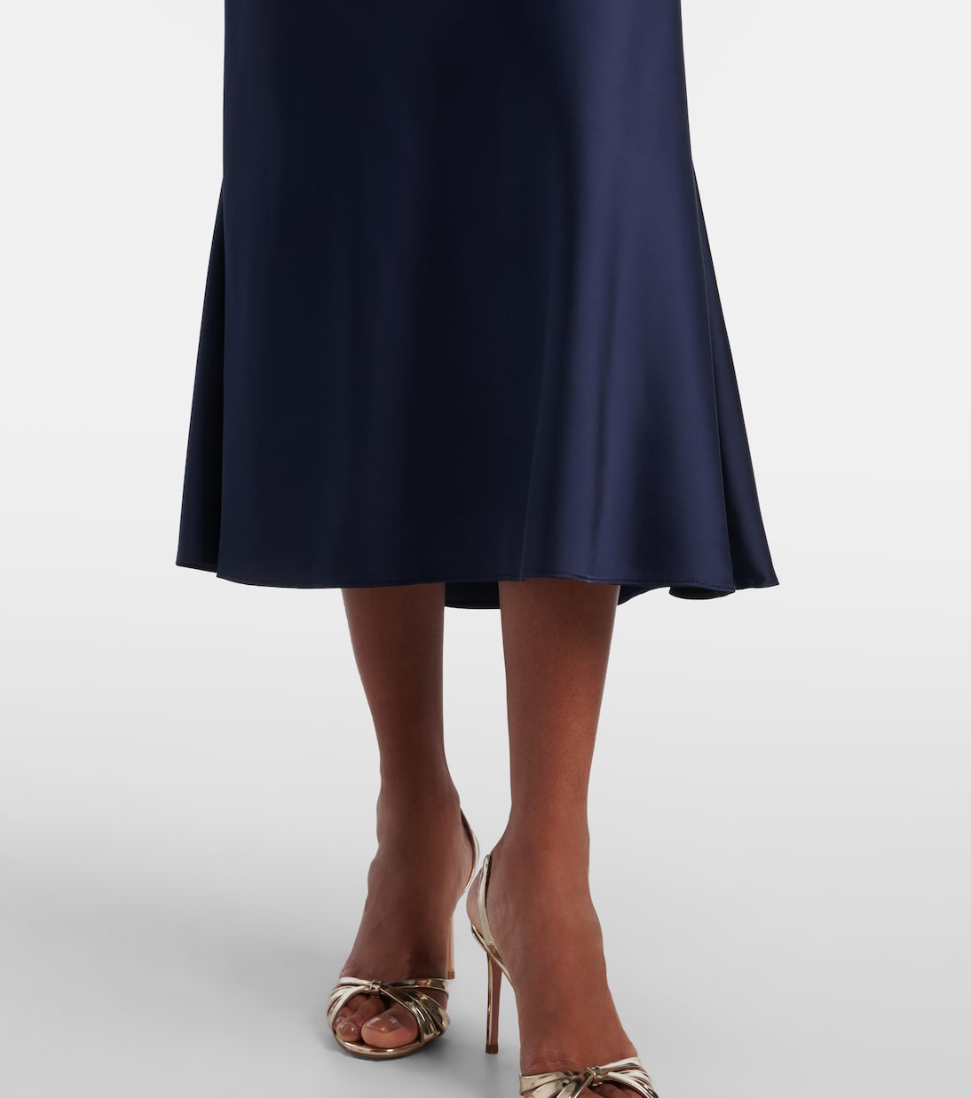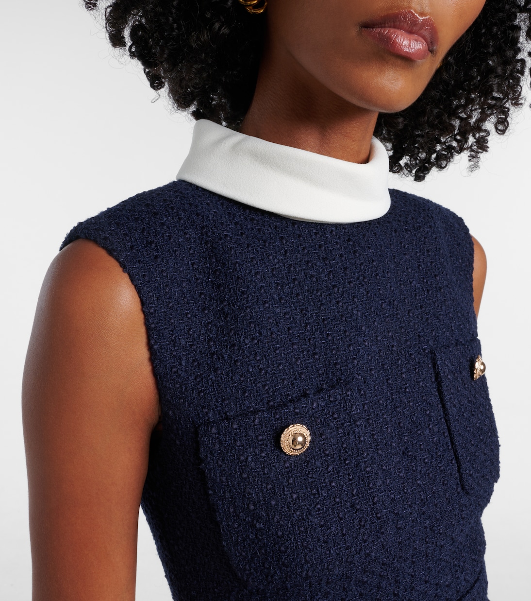 Это миди-платье от Self-Portrait гарантирует непревзойденный шик в любой ситуации. Стиль сочетает в себе блестящую атласную юбку и топ из букле, который дополняет высокий воротник и соответствующий пояс.