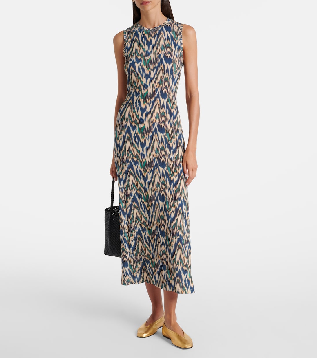 Платье миди Orla от Ulla Johnson — отличный вариант, если вы хотите создать весёлый образ без лишних хлопот. Изделие выполнено из мягкого трикотажа с абстрактным принтом по всей поверхности.