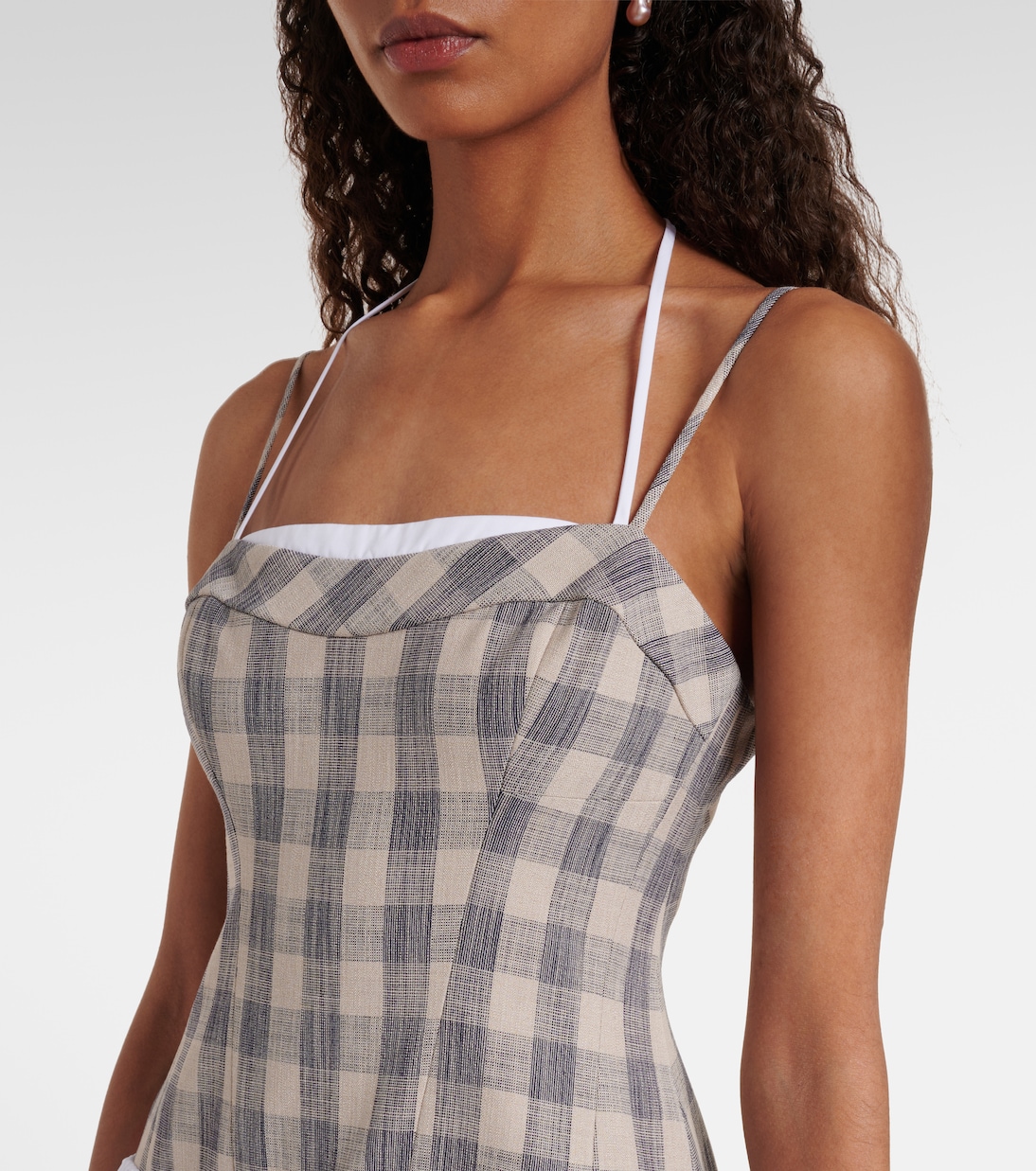Платье миди Pfeiffer без рукавов от Simkhai с клетчатым лифом и объемной юбкой создает гармоничный силуэт. Это воздушное изделие дополнено регулируемыми завязывающимися бретельками-халтер и потайной застежкой-молнией.