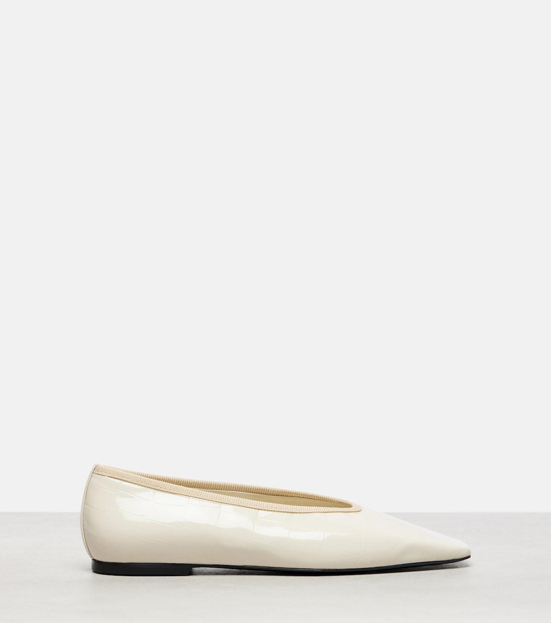 Воплощайте в жизнь видение современного минимализма от Toteme с этими балетками. Они изготовлены из белой лакированной кожи с глянцевой отделкой и отличаются изысканным квадратным носком.